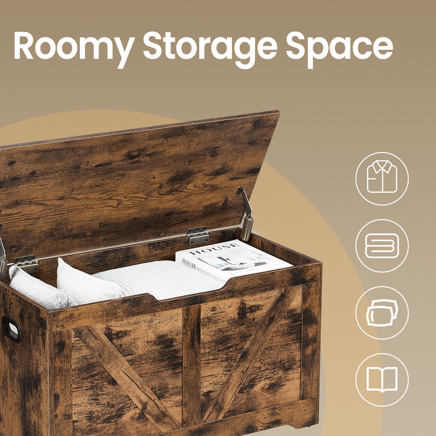 Farmhouse Storage Bench with Safety Hinges, Multi-Functional Entryway Shoe Bench, Storage Trunk, Rustic Brown
