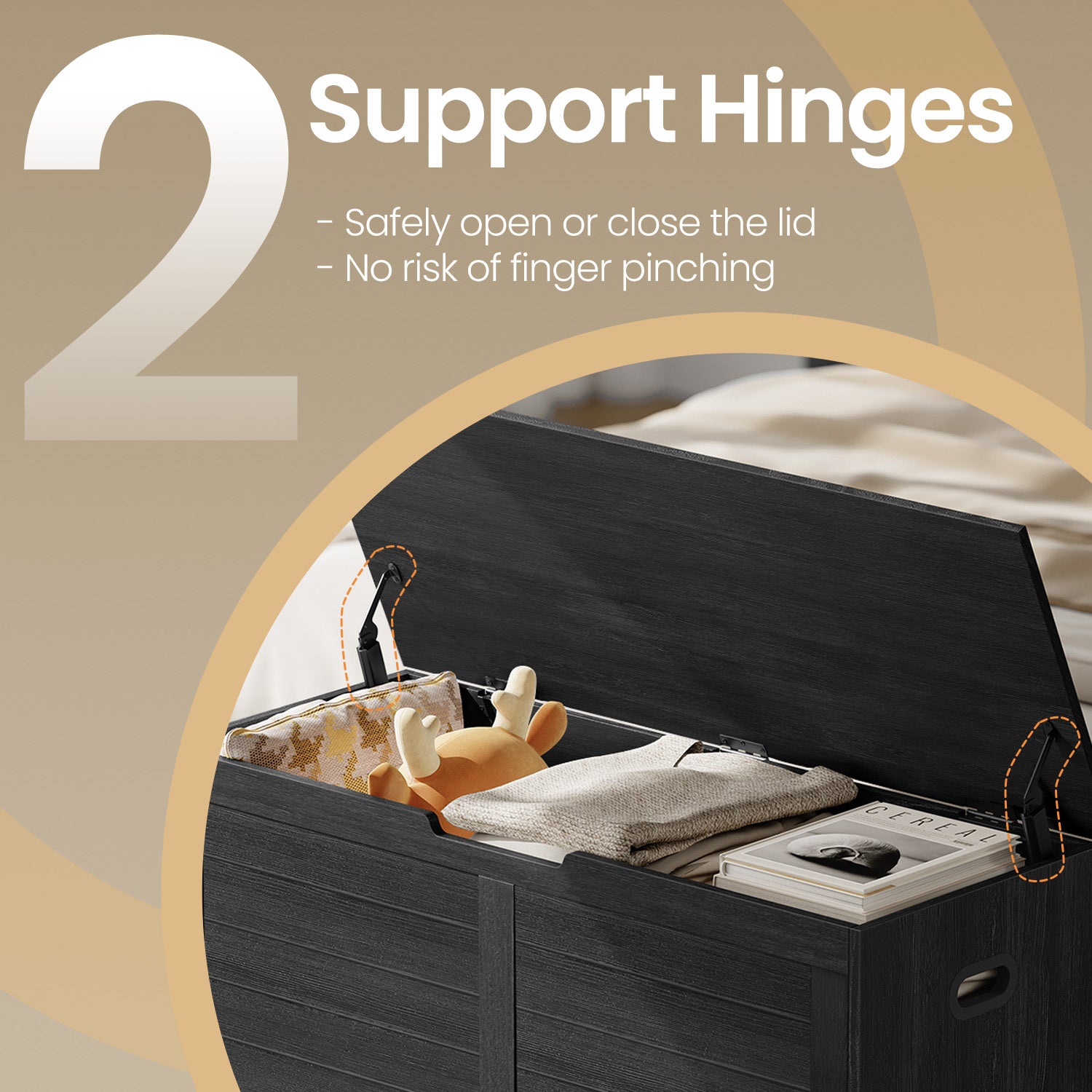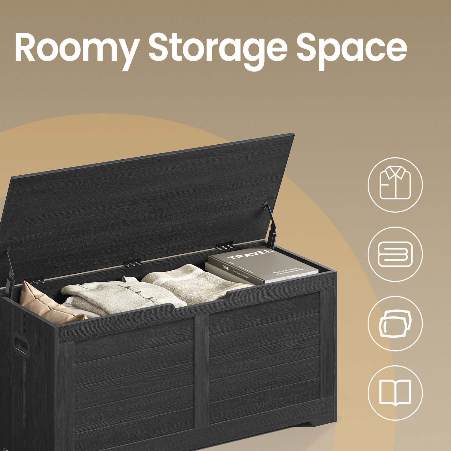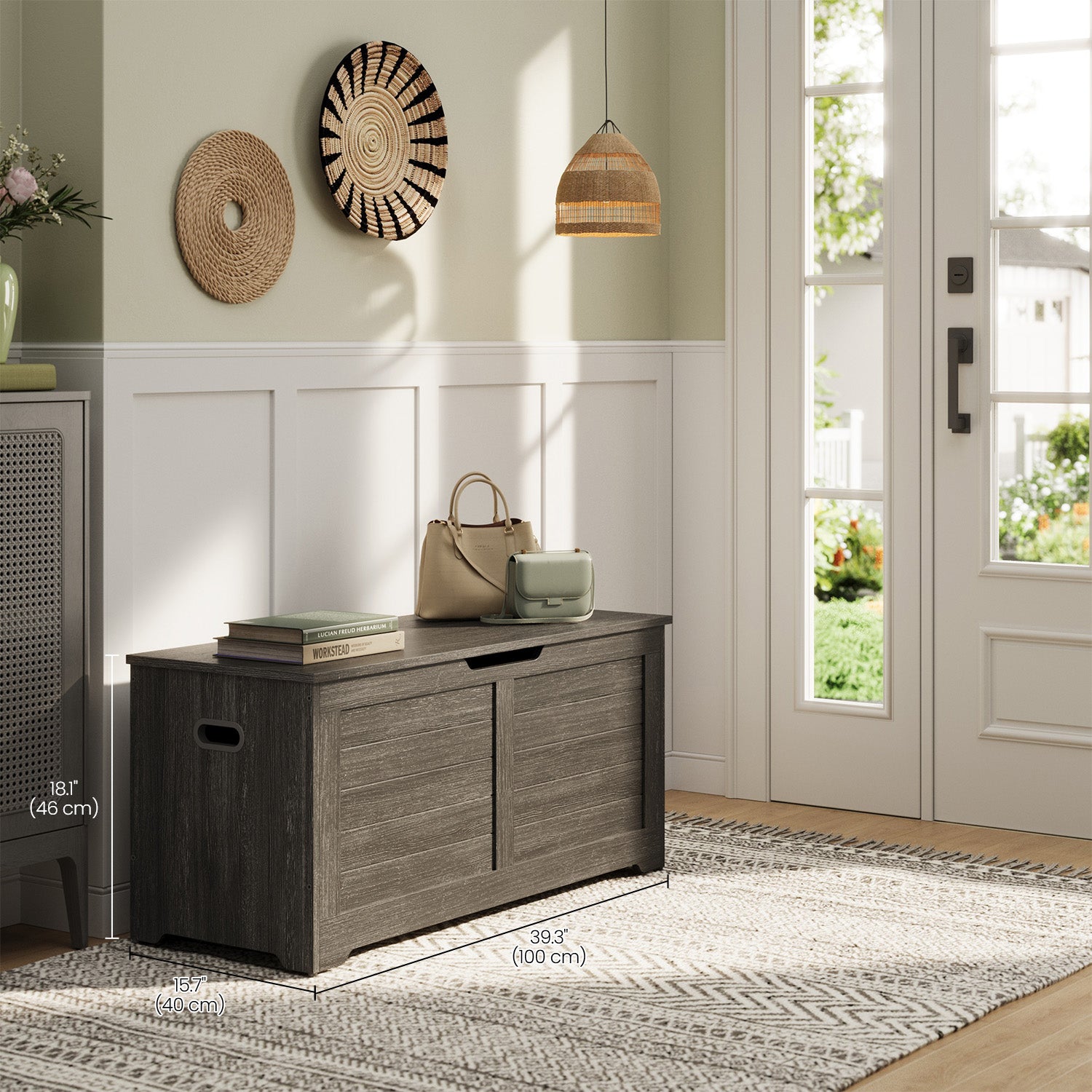 Farmhouse Style Storage Bench with 2 Safety Hinges, 300lb Weight Capacity, Entryway, Living Room Organizer, Spacious 15.7"x39.4"x18.1", Charcoal Gray
