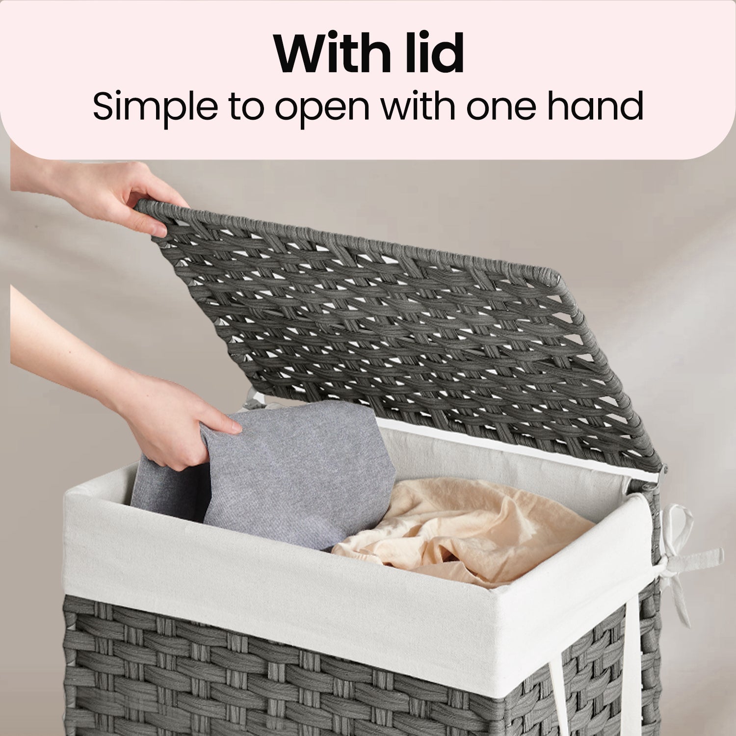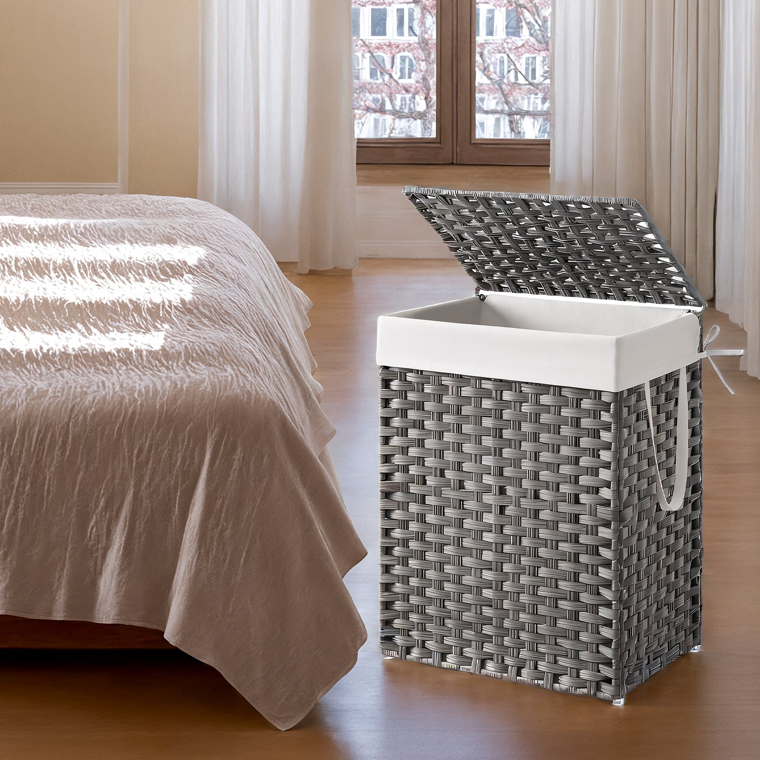 Foldable Laundry Hamper Basket with Removable Liner & Lid, 23.8 Gallon (90L) Waterproof Synthetic Rattan, Space-Saving for Bathroom,Bedroom, Handles for Easy Carry, Dove Gray