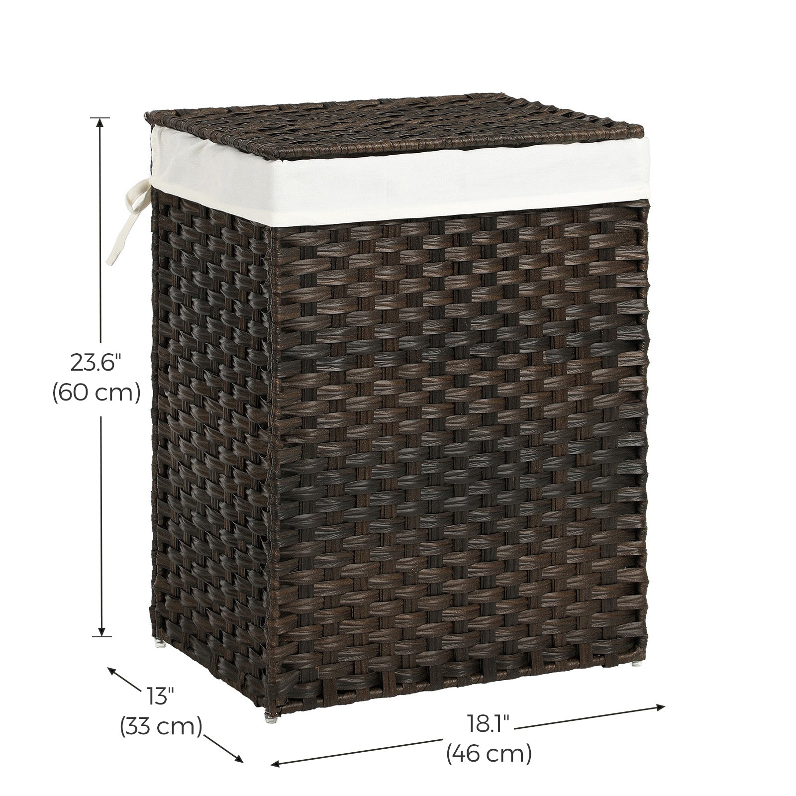 Foldable Laundry Hamper with Removable Liner & Lid, 23.8 Gallon (90L) Synthetic Rattan Storage Basket for Clothes, Handles, Space-Saving, Chestnut Brown