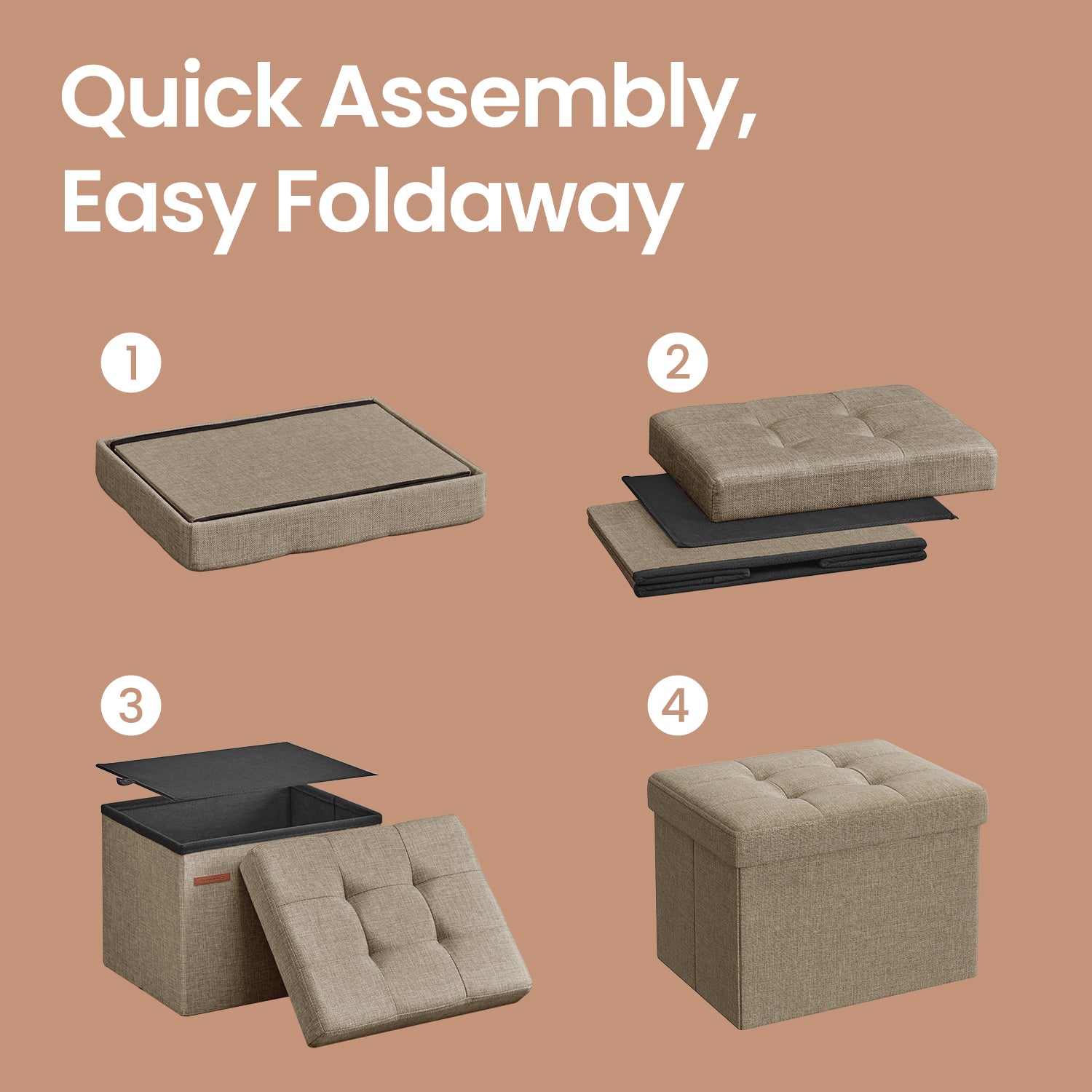 Foldable Storage Ottoman, 286lb Capacity Multi-Functional Footrest Stool with 8 Gallon Storage, 16.1"W, Light Taupe