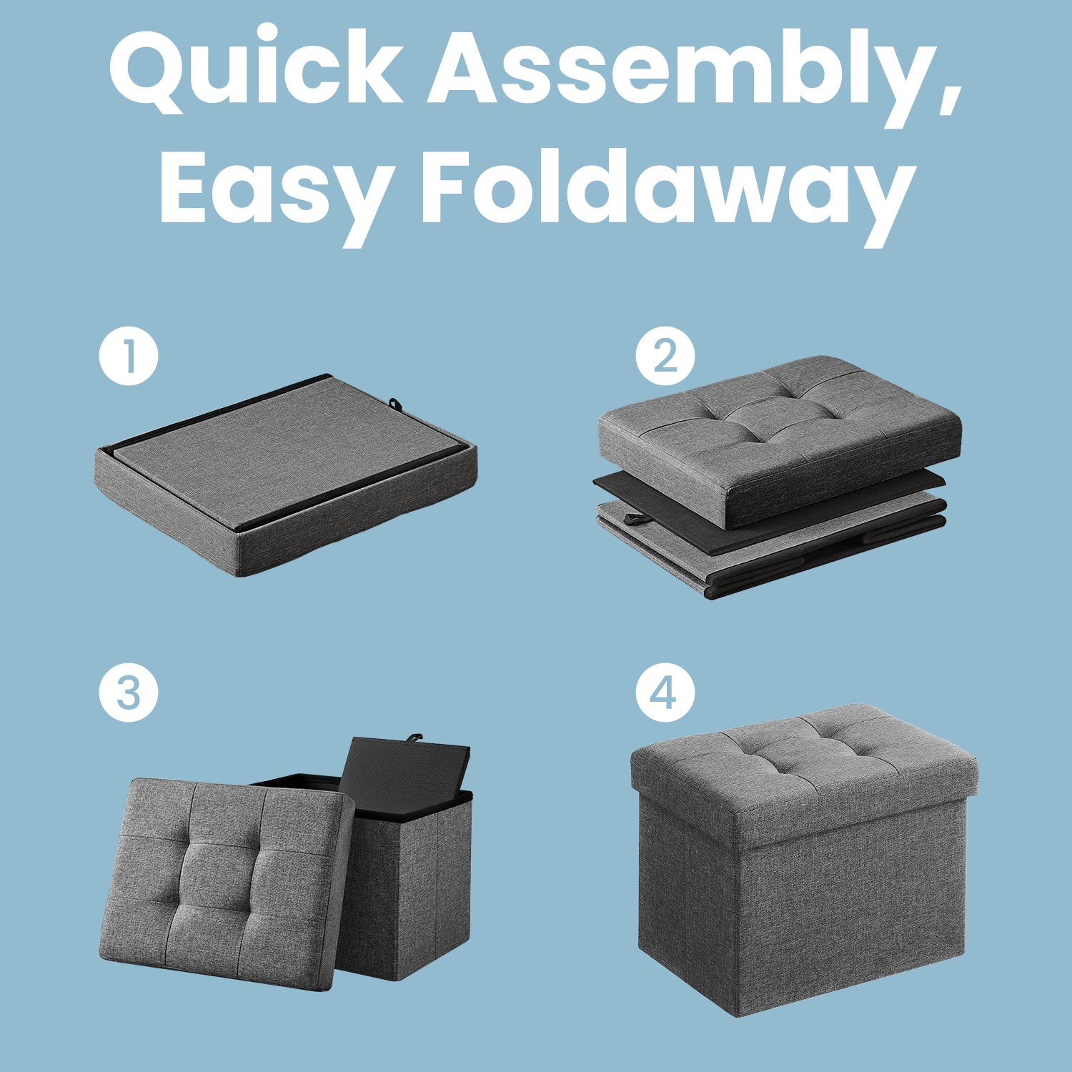 Foldable Storage Ottoman, 286lb Capacity Multi-Use Footrest Stool with 8 Gallon Storage, 16.1"W, Dark Gray