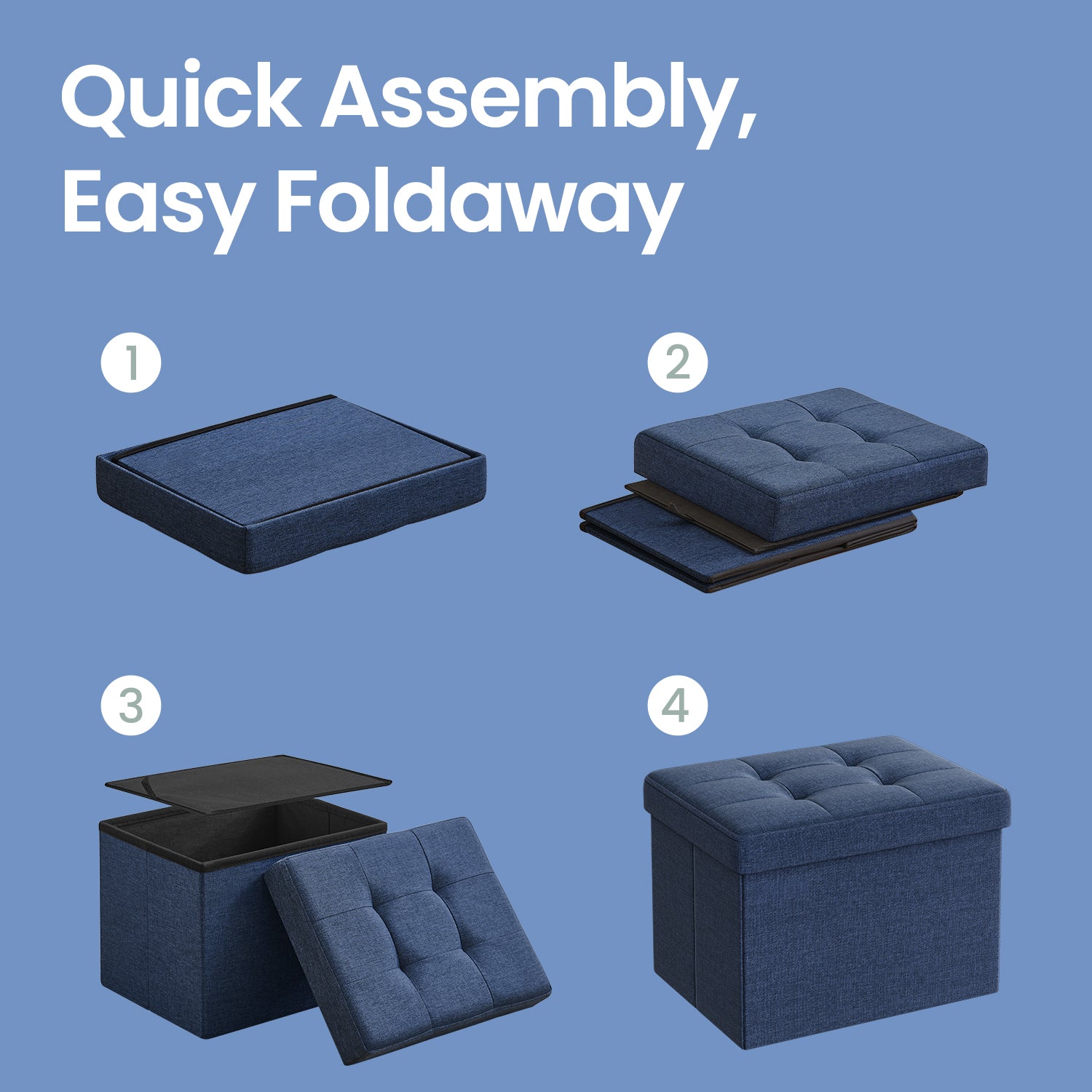 Foldable Storage Ottoman, 8 Gallon Capacity, 286 lb Weight Limit, Tufted Linen-Look, for Living Room, Bedroom, Light Denim Blue