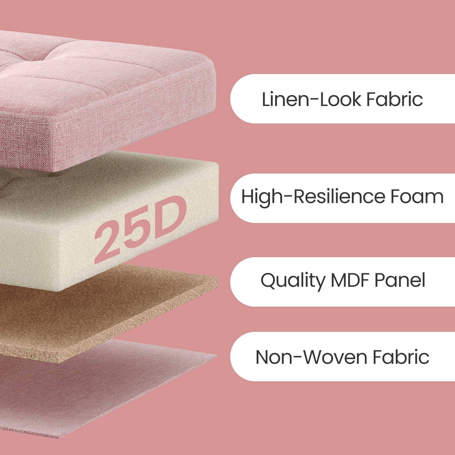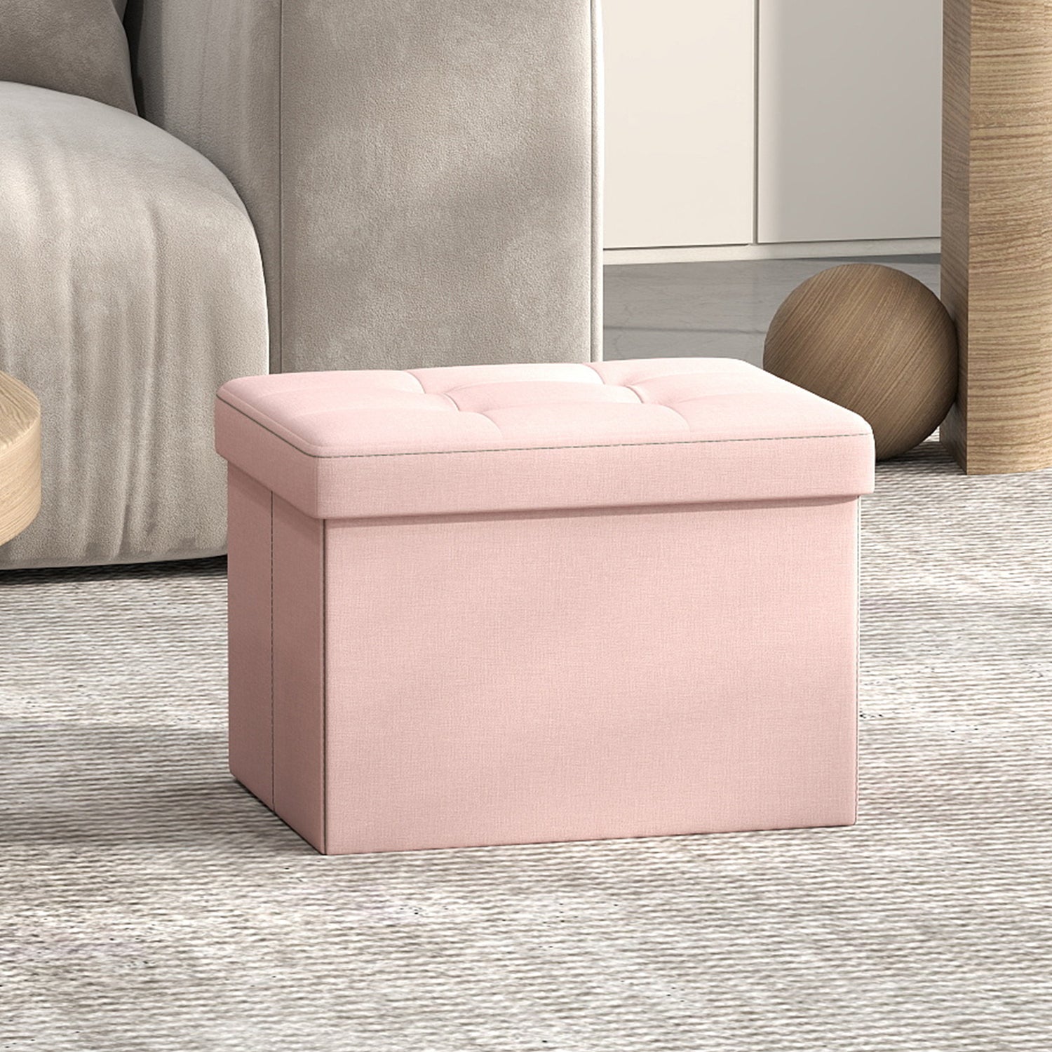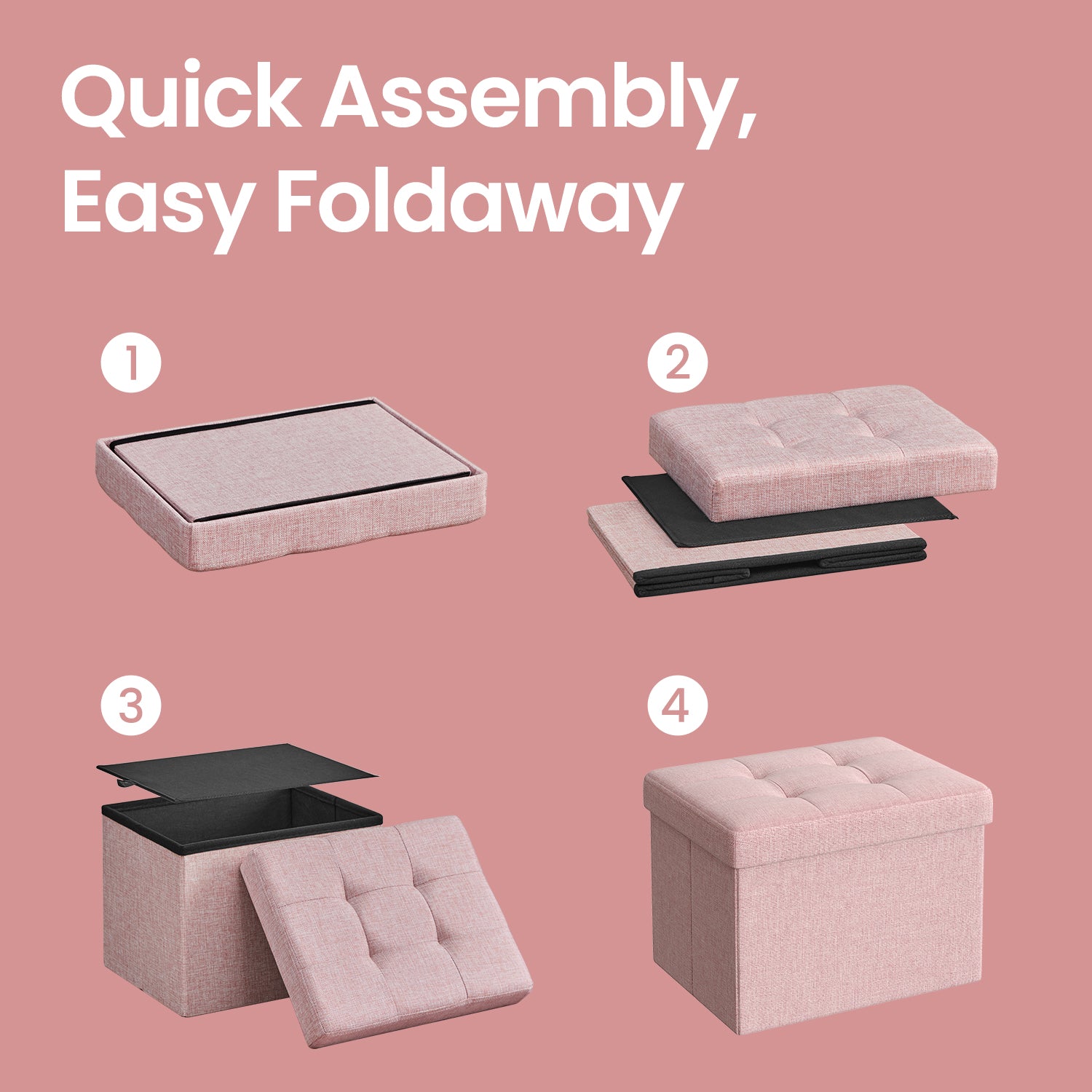 Foldable Storage Ottoman, 8 Gallon Capacity, 286lb Weight Limit, Tufted Linen-Look, Multi-Functional for Living Room, Bedroom, Jelly Pink