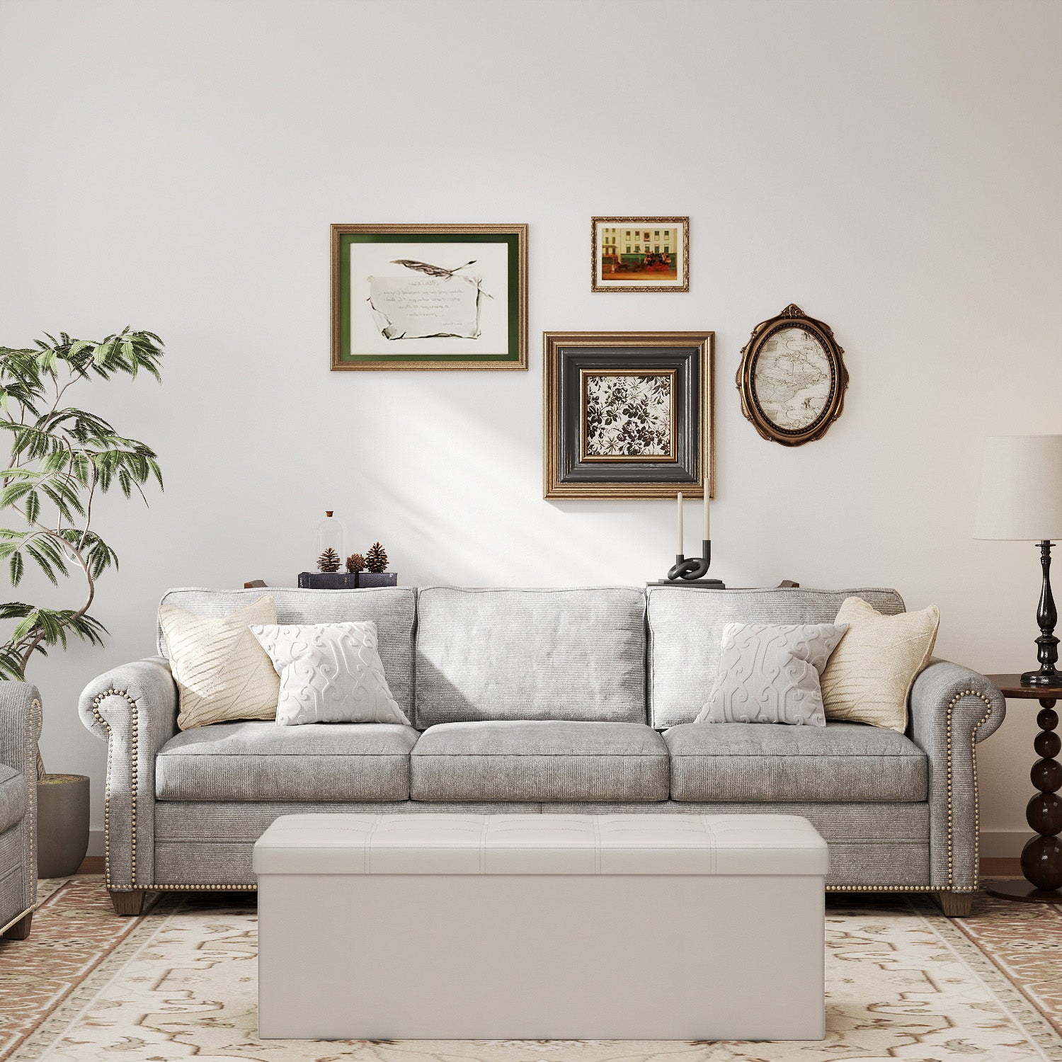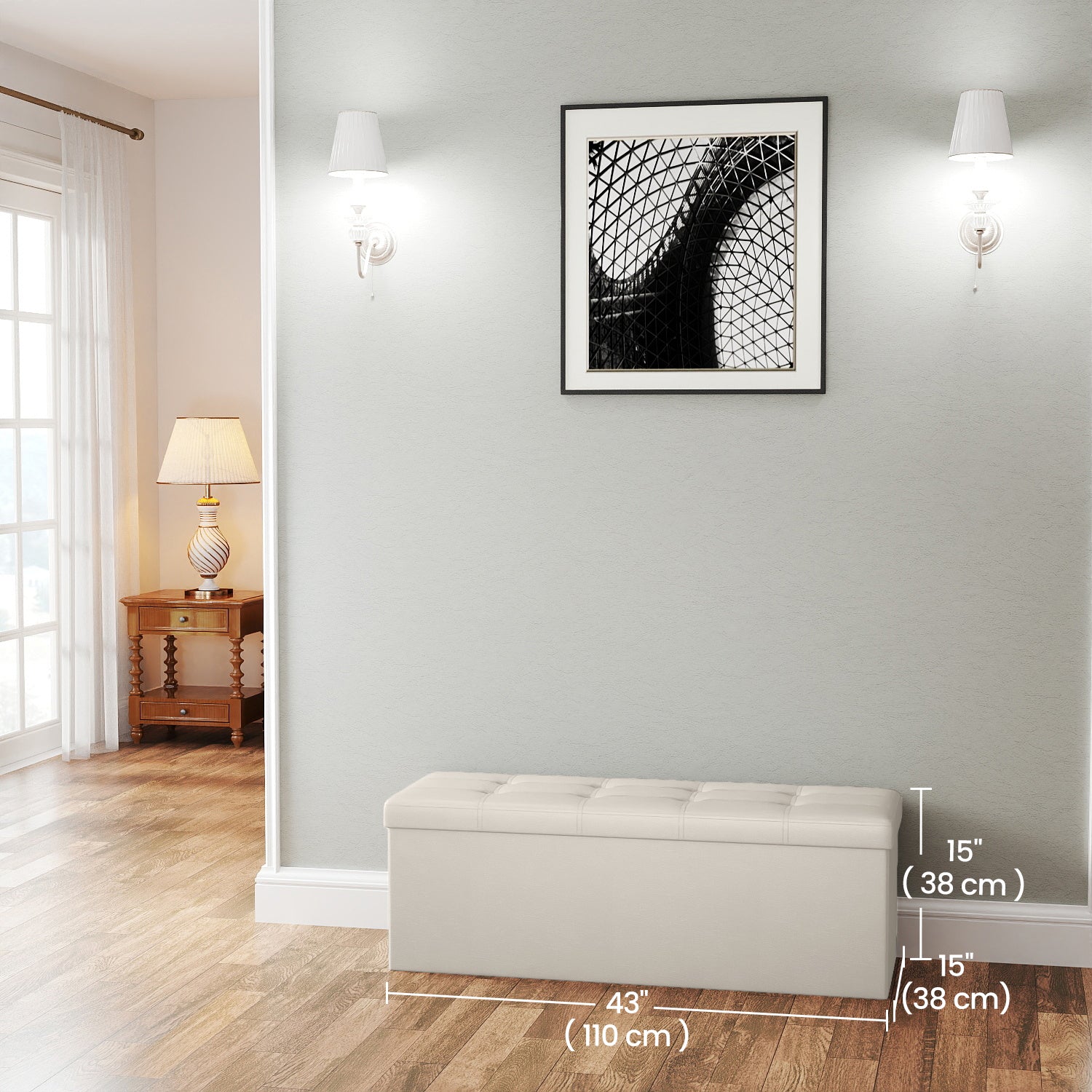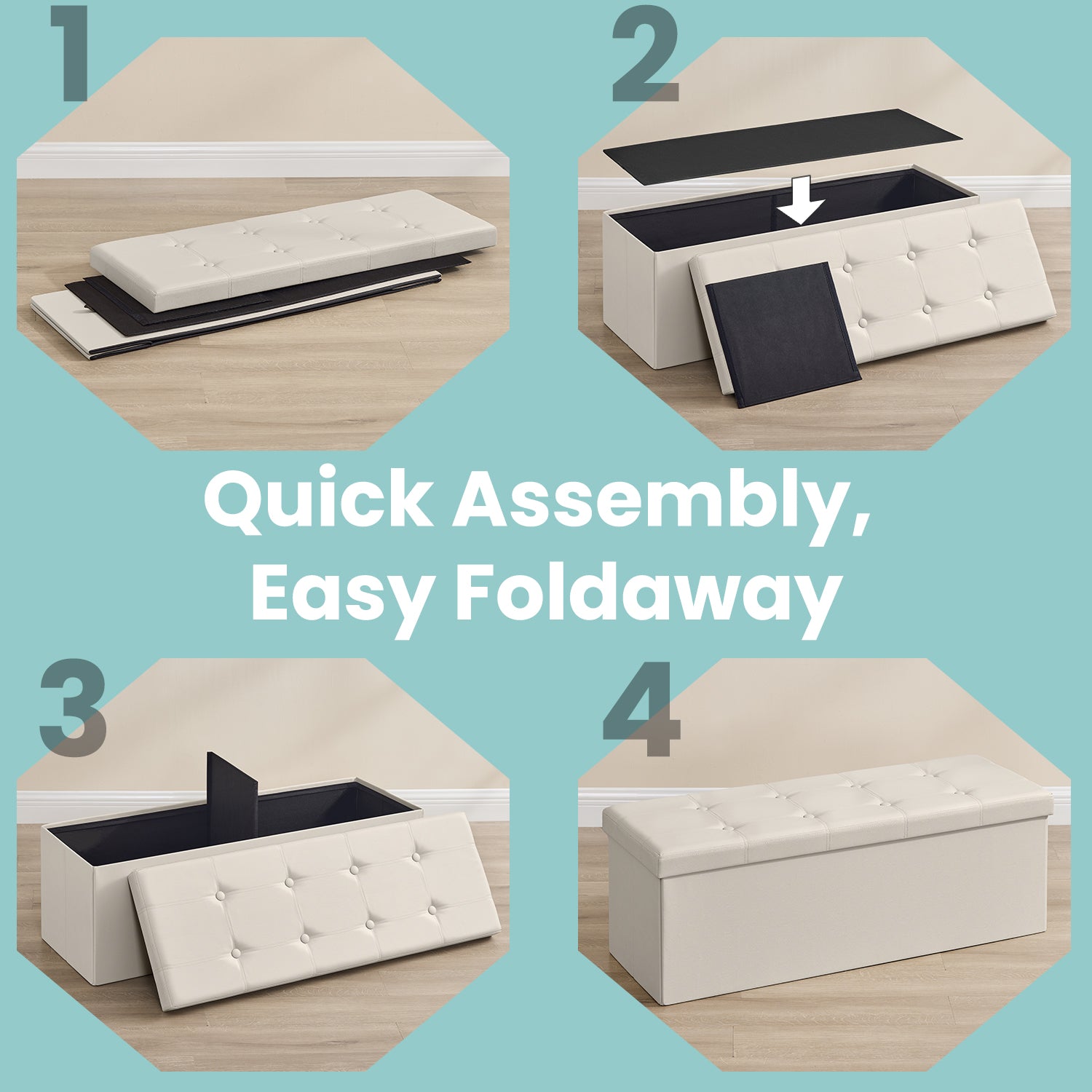 Foldable Storage Ottoman Bench, 300kg Capacity, Multi-Functional Footrest/Seat, 131L Storage Space, Quick Assembly, Beige
