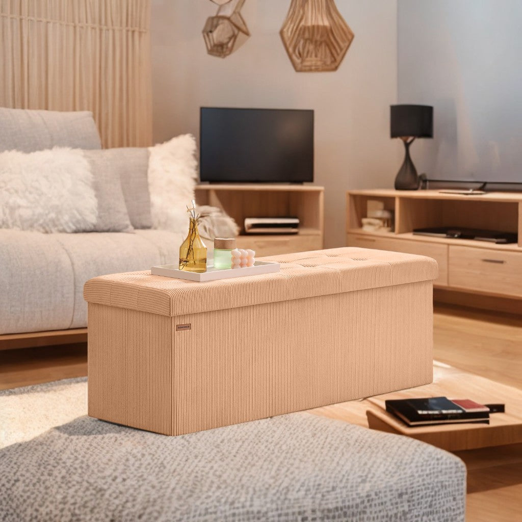 Foldable Storage Ottoman Bench, 43" Multi-Functional with 35-Gallon Capacity, 660lb Weight Limit, for Living Room/Bedroom, Apricot
