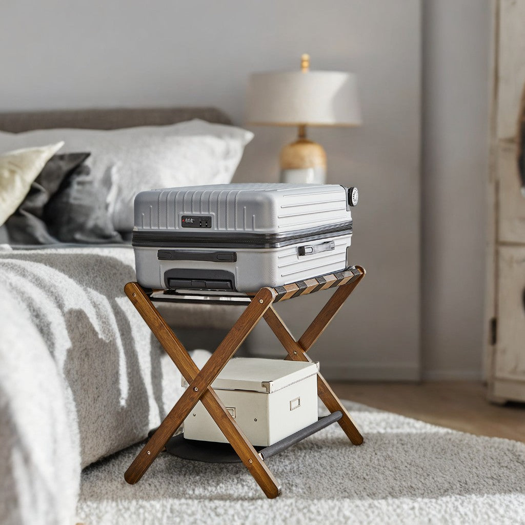 "Effortless Packing & Unpacking – Say goodbye to back strain with this elevated luggage stand, offering a comfortable height for hassle-free suitcase access.