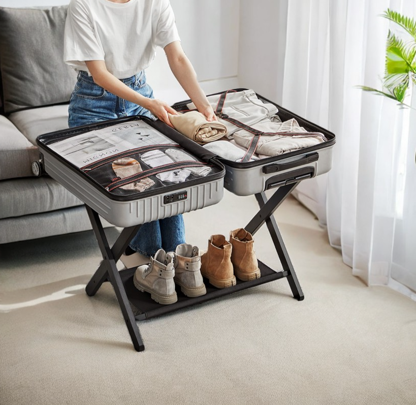 "Effortless Packing & Unpacking – Elevate luggage to a back-friendly height, making travel prep a breeze for you or your guests.