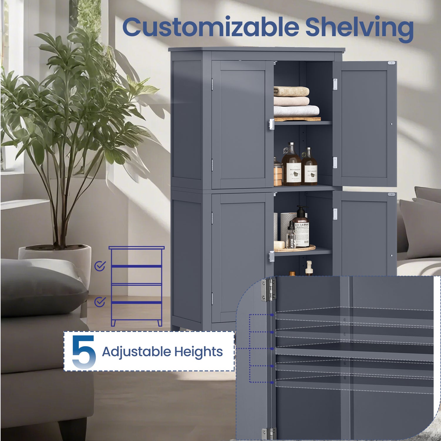 Freestanding Bathroom Storage Cabinet with 4 Doors & 5-Position Adjustable Shelves, Spacious Floor Organizer for Towels & Toiletries, Slate Gray
