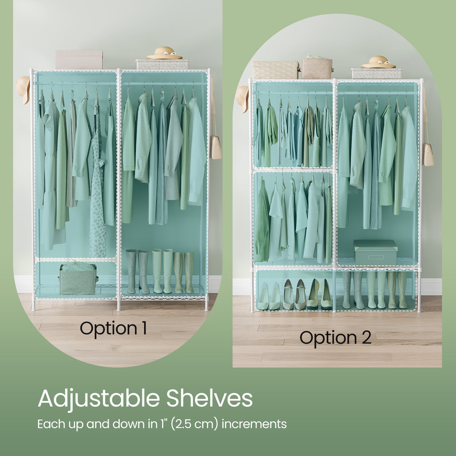 Freestanding Clothes Rack, Metal Heavy-Duty Garment Rack/Wardrobe Closet with 3 Hanging Rods, 4 Shelves, Adjustable/Removable Parts, Tool-Free Assembly for Home Storage,Cloud White
