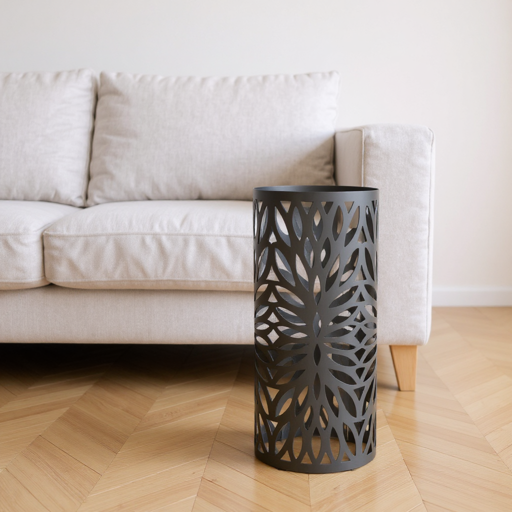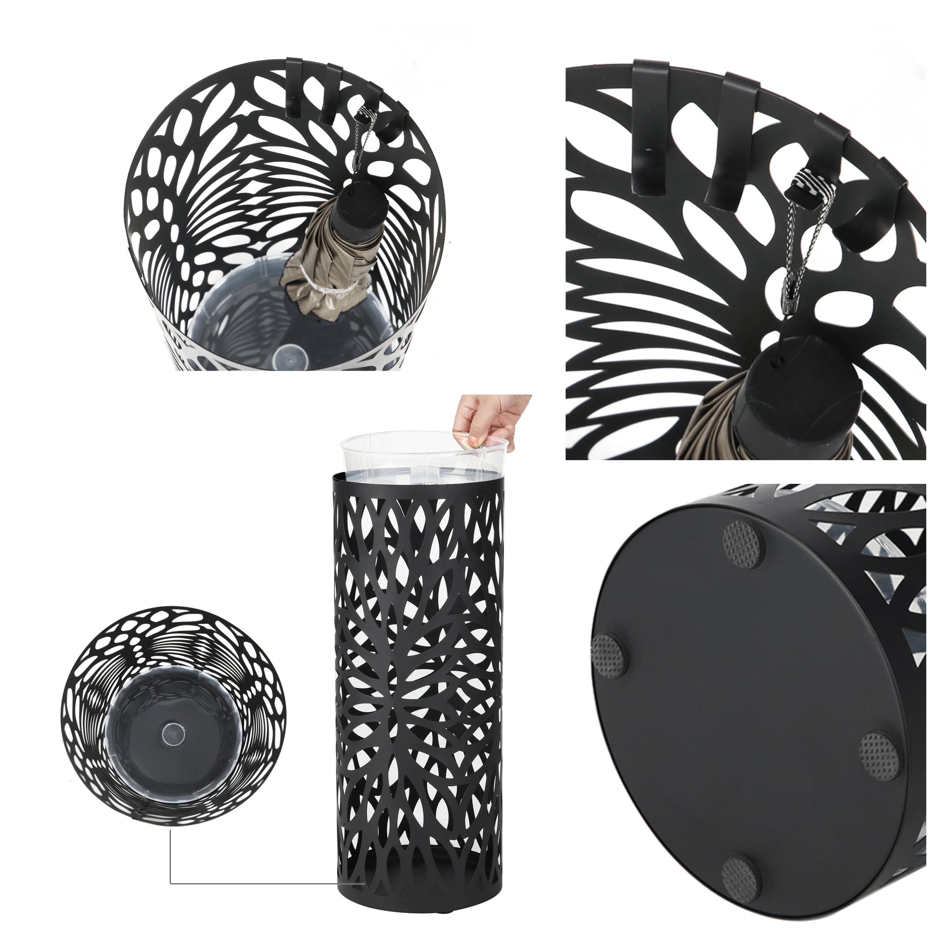 Freestanding Umbrella Stand with Drip Tray, 19.3" Steel Holder for Entryway, Includes 4 Hooks for Canes Walking Sticks,Matte Black