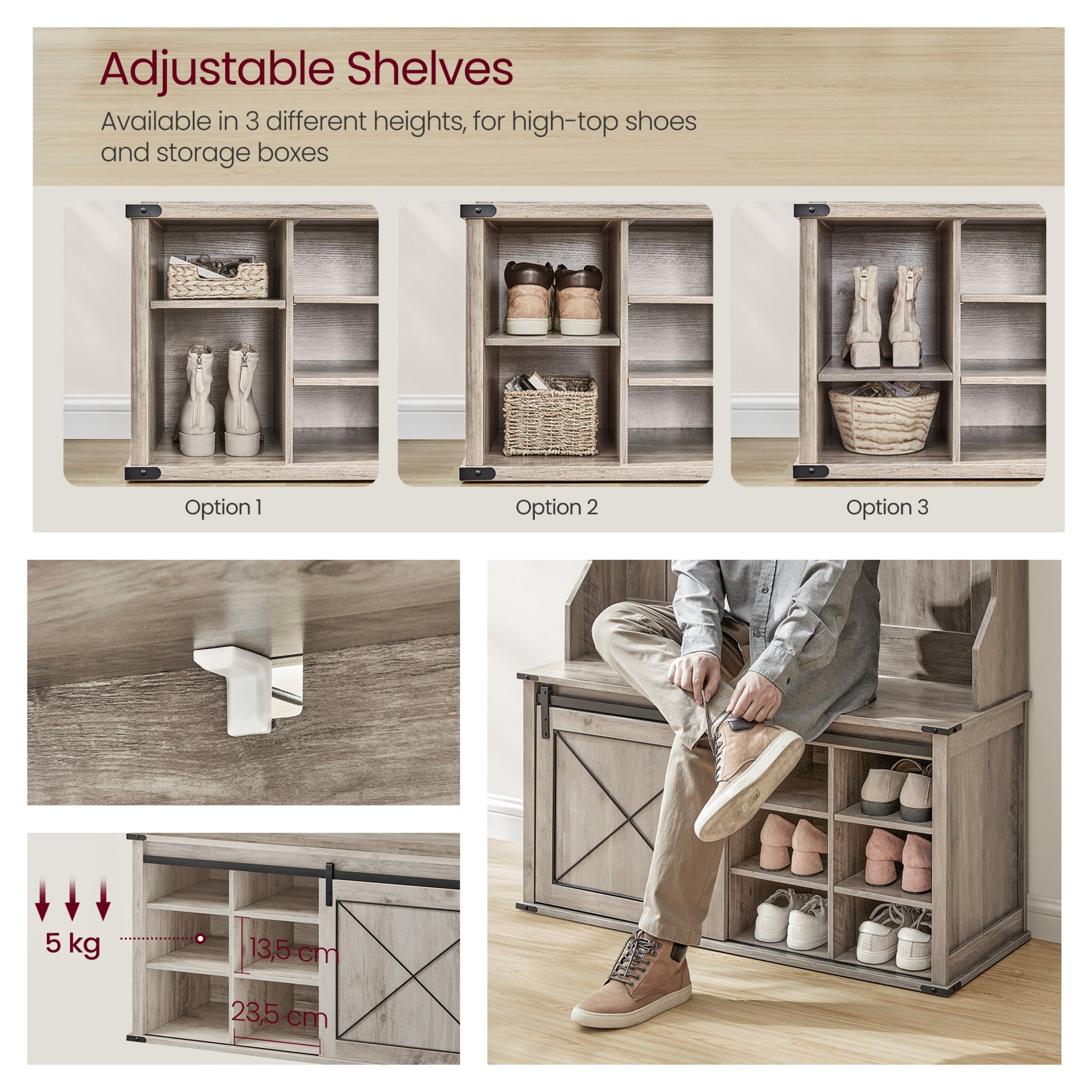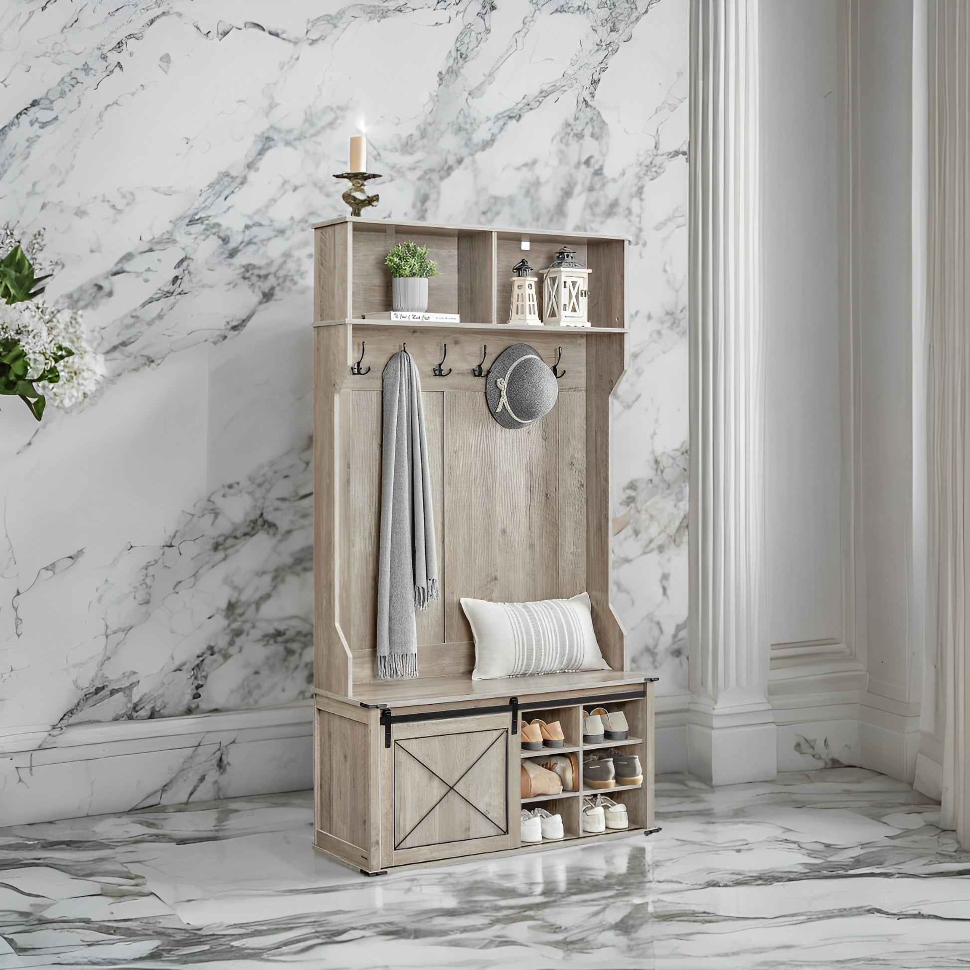 Hall Tree with Bench - 6 Triple Hooks & Adjustable Shoe Storage, Space-Saving Entryway Organizer, Heather Greige