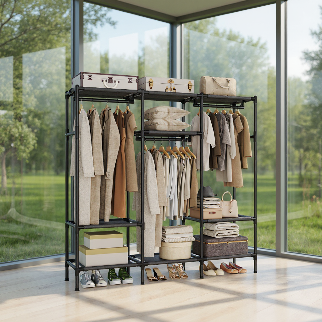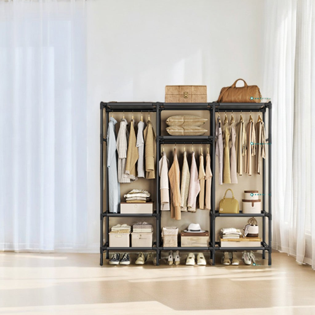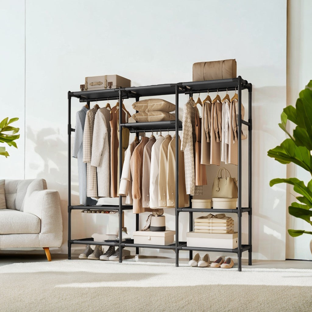 Heavy Duty Clothes Rack, 72 Inch Large Wardrobe with 3 Rails & 9 Shelves, 330 lb Capacity, Easy No-Tool Assembly, for Bedroom, Black