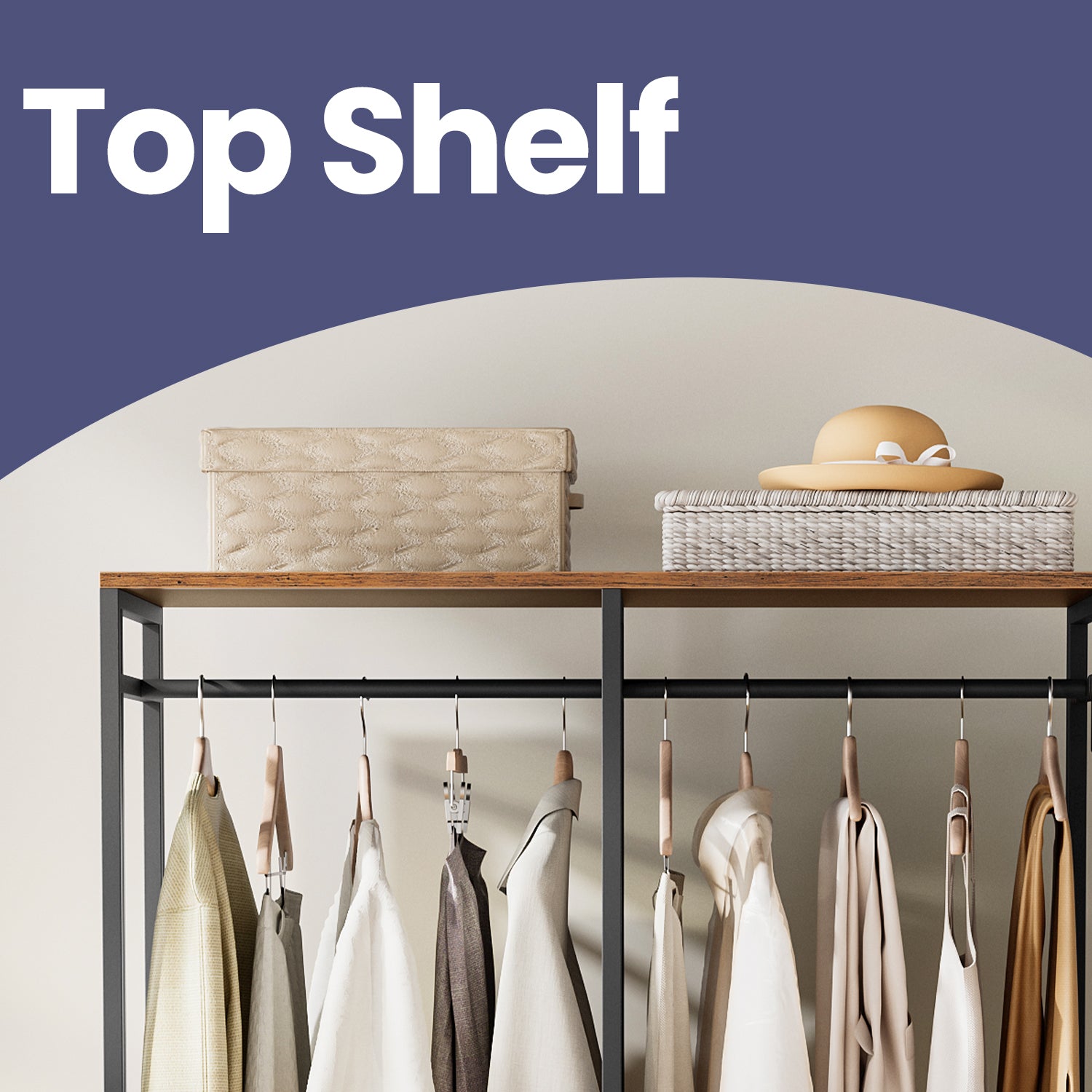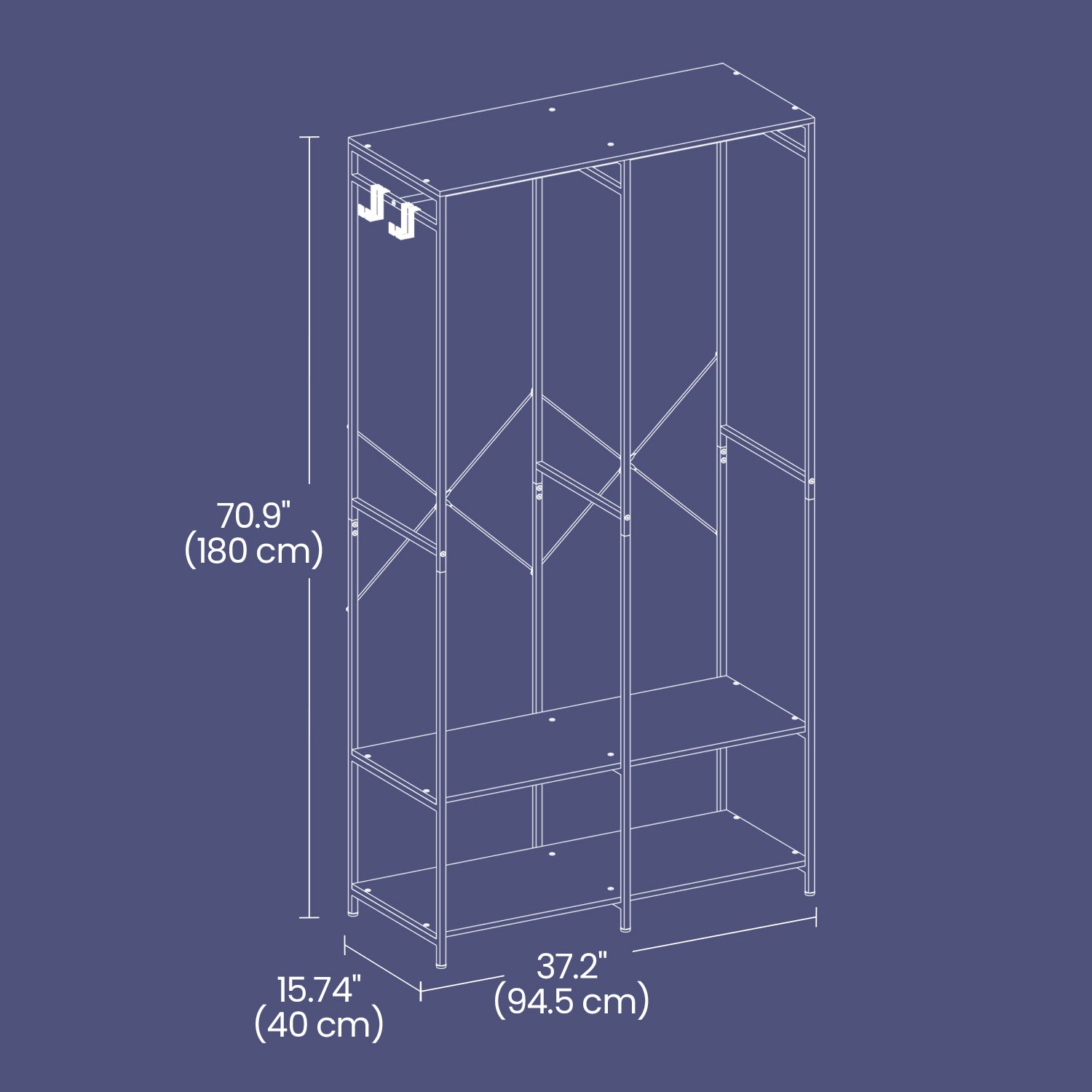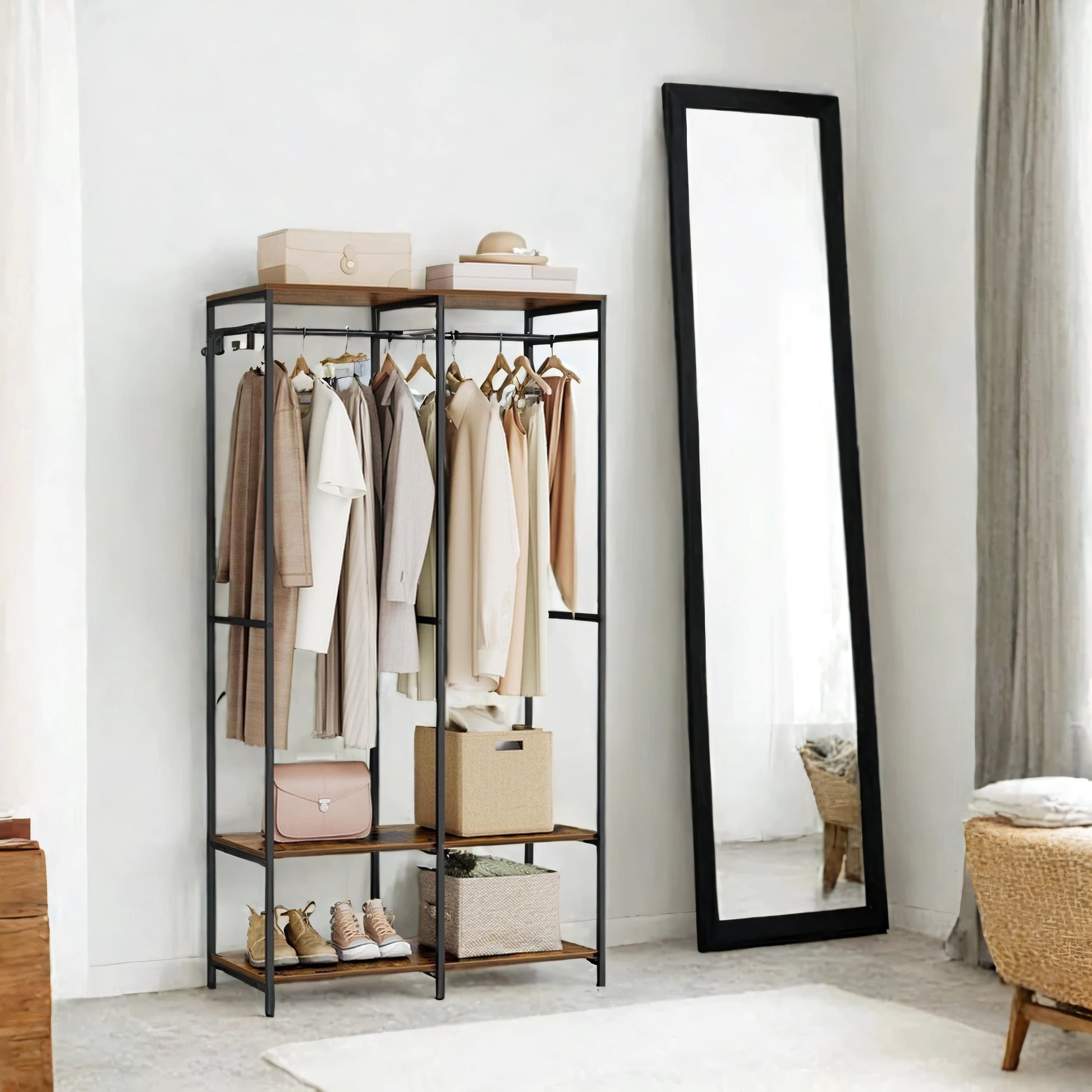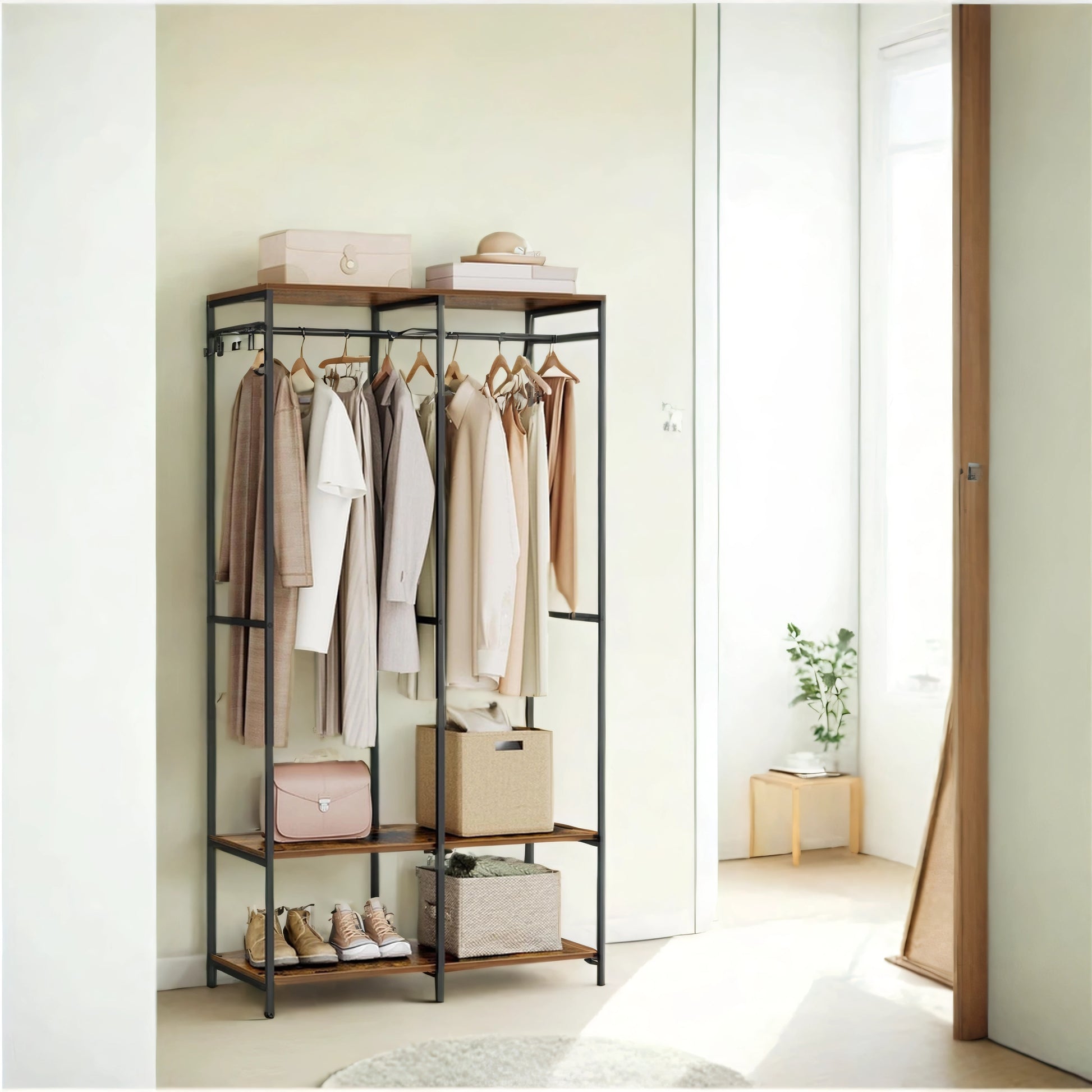 Heavy Duty Garment Rack, Iron and Wood Closet Organizer with Hanging Rods & Shelves, Freestanding Storage for Bedroom, 70.9 Inch,Rustic Brown