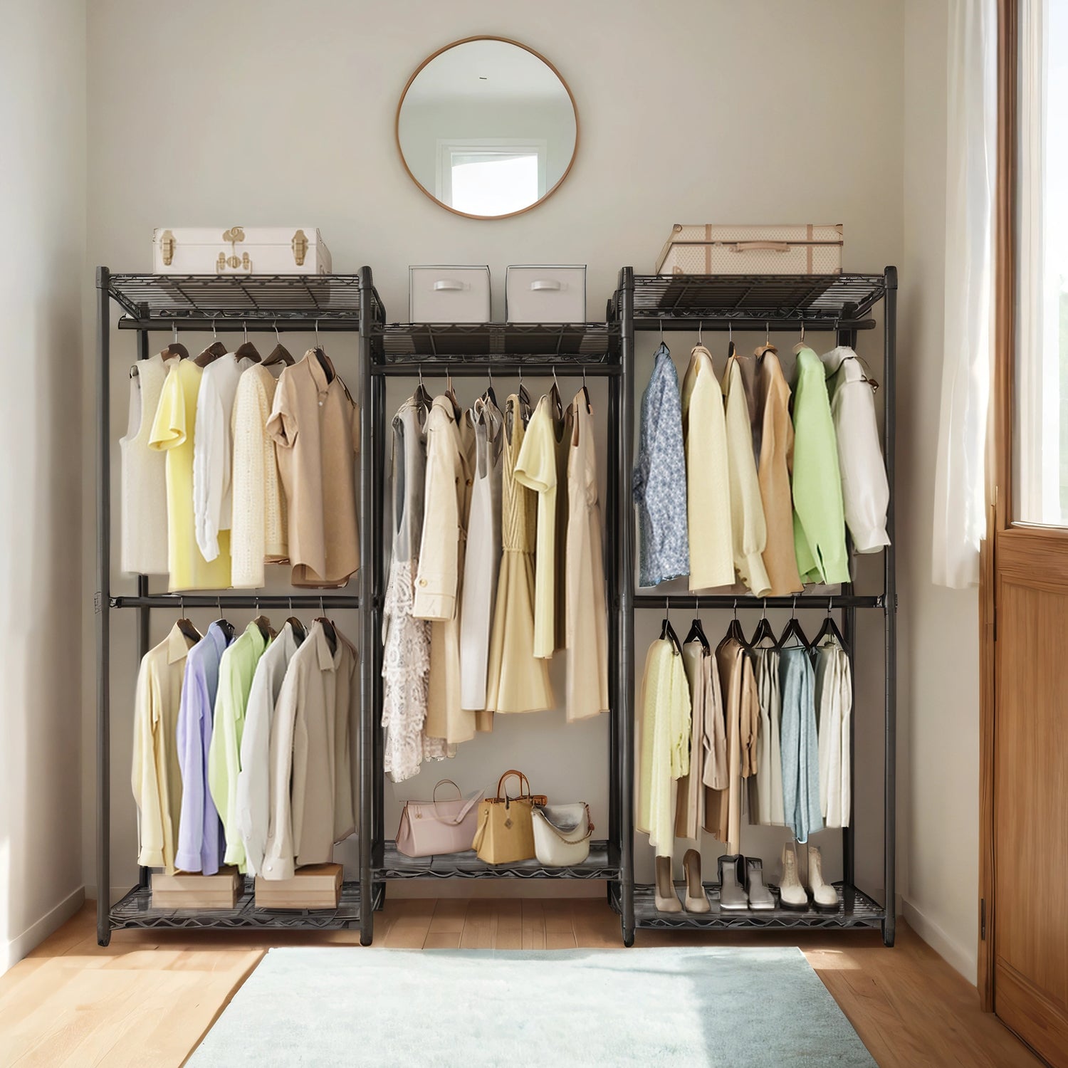Heavy-Duty Garment Rack with Adjustable Shelves & Hanging Rails, 68.7-Inch Wide Portable Closet, No-Tool Assembly, Ink Black
