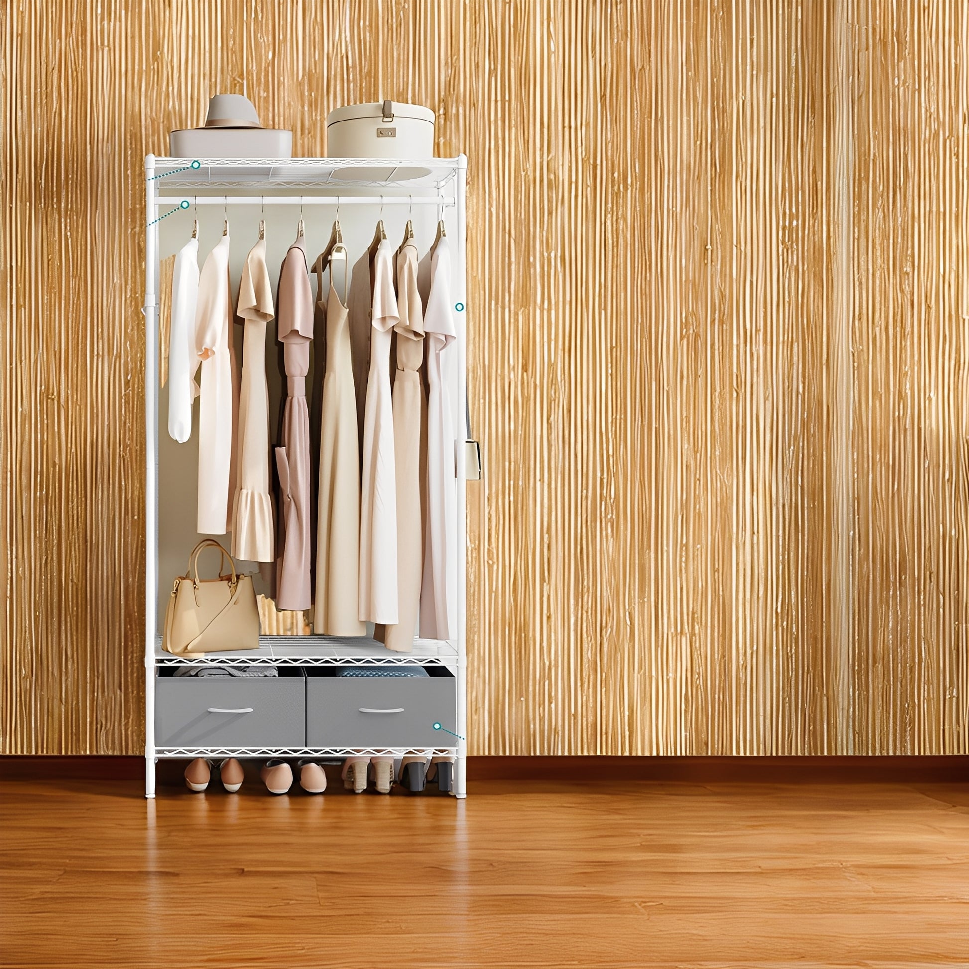 Heavy-Duty Garment Rack with Shelves & Drawers, Freestanding Clothes Organizer with Hanging Rail and Hooks, No-Tool Assembly, Cloud White and Dove Gray