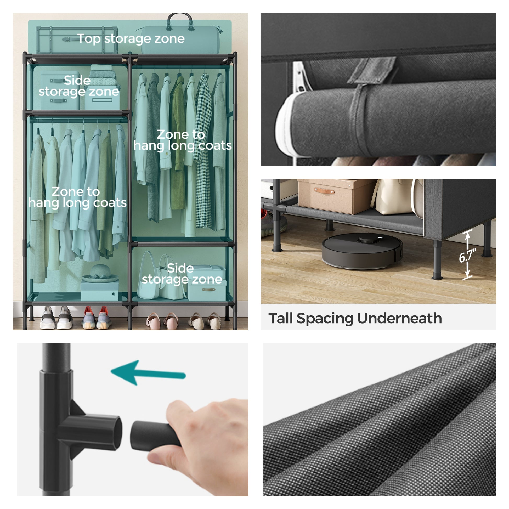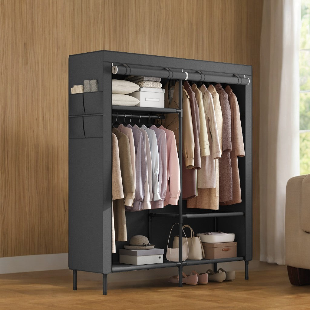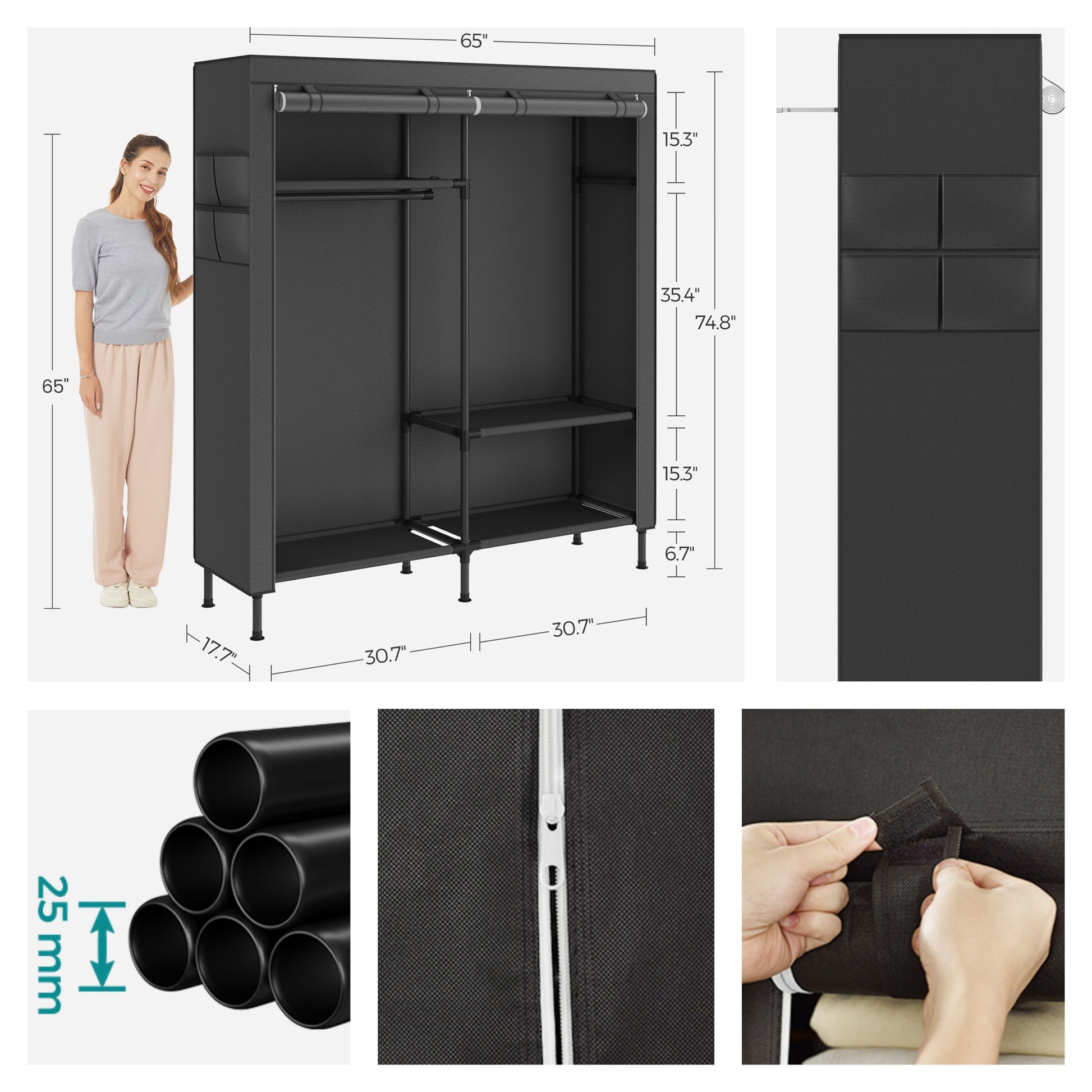 Heavy Duty Wardrobe Closet, 65 Inch Portable Closet Organizer with 2 Rails, 3 Shelves & 4 Pockets, Freestanding, Easy Assembly, Black