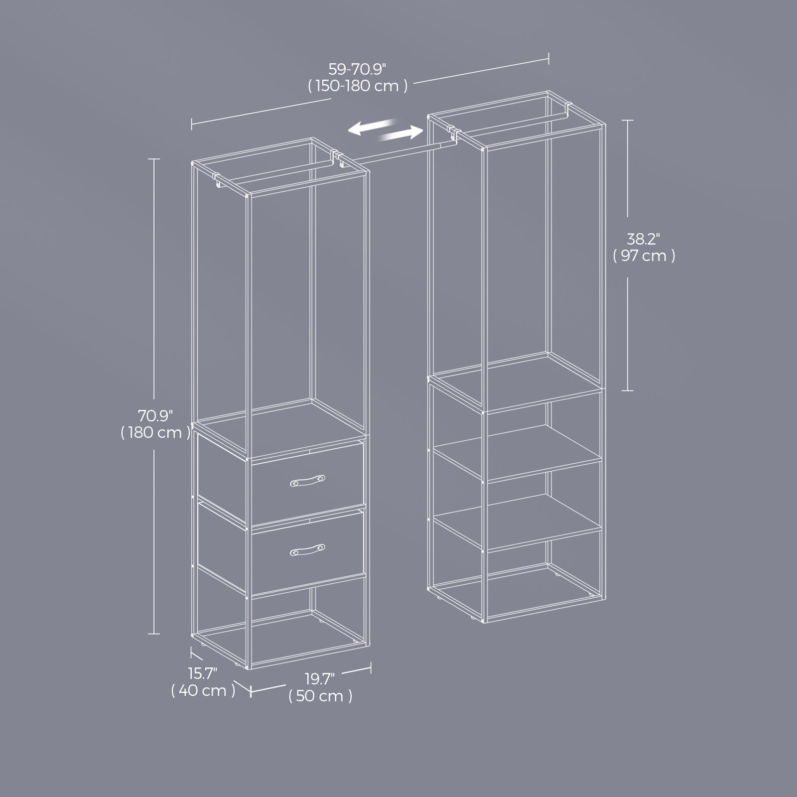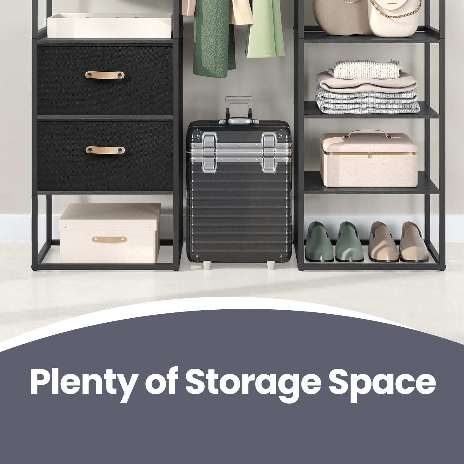 Heavy Duty Wardrobe Closet, 70.9 Inch Freestanding Garment Rack with Extendable Rod, 2 Drawers & 4 Shelves, Space-Saving Organizer for Bedroom,Ebony Black