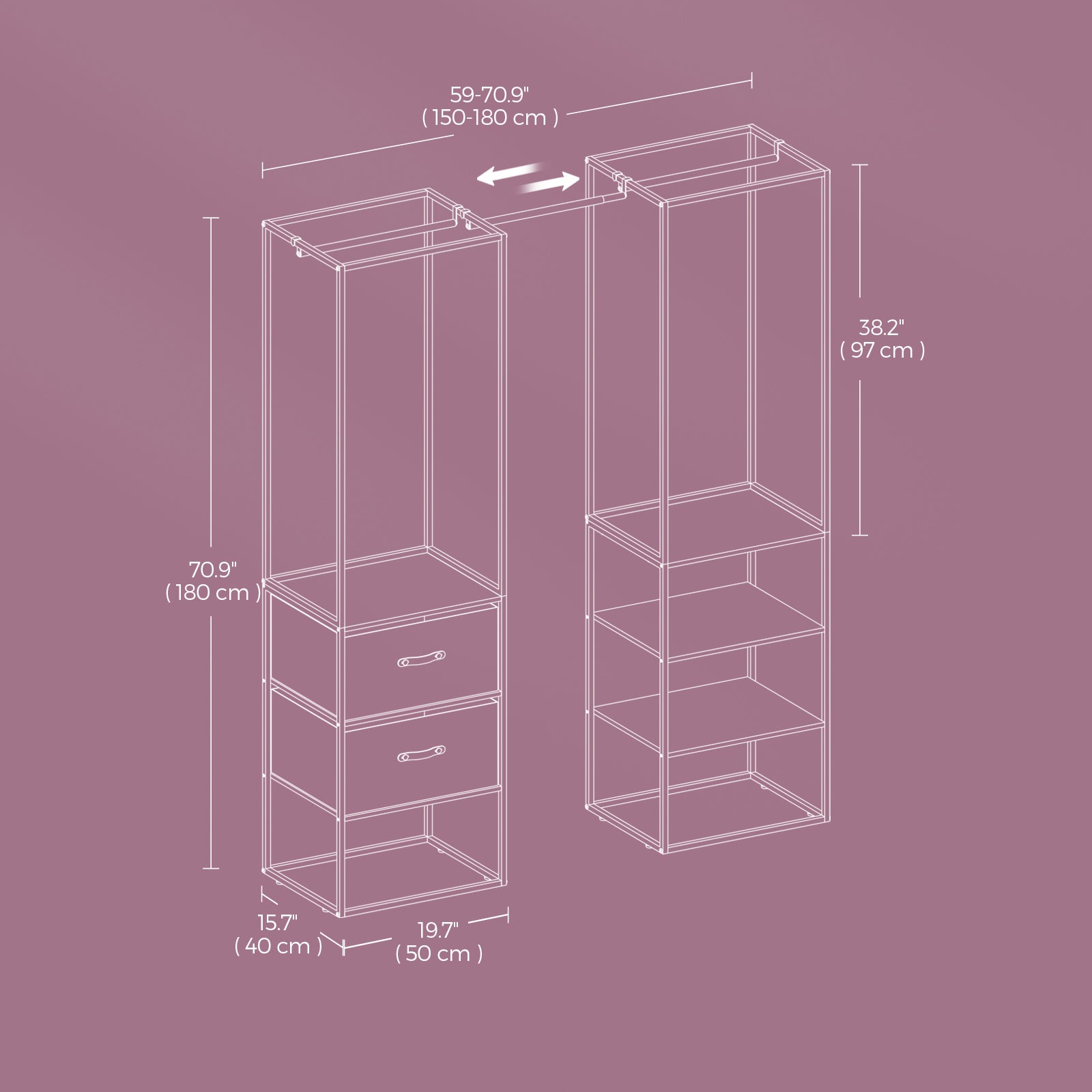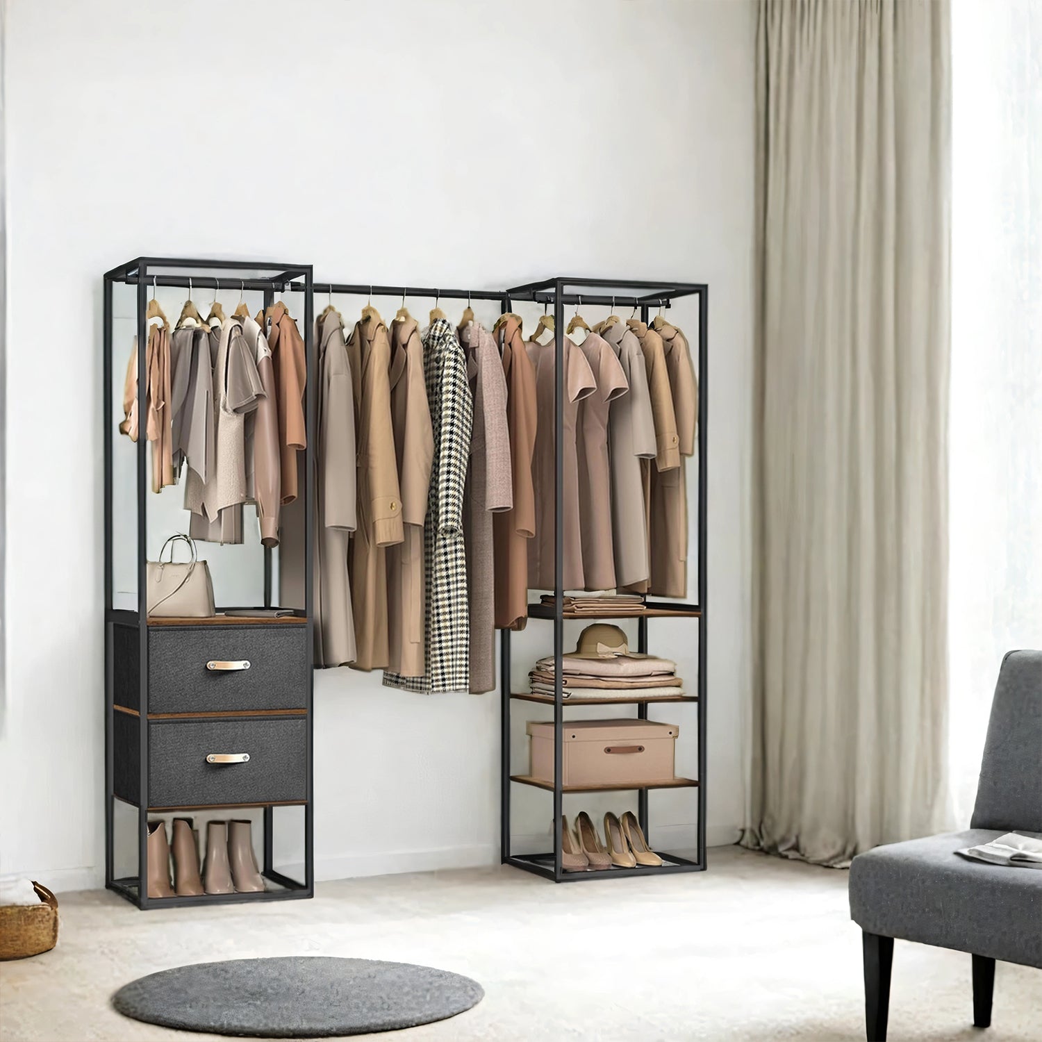Heavy Duty Wardrobe Closet, 70.9 Inch Freestanding Garment Rack with Extendable Rod, 2 Drawers & 4 Shelves, Space-Saving Organizer for Bedroom,Rustic Brown
