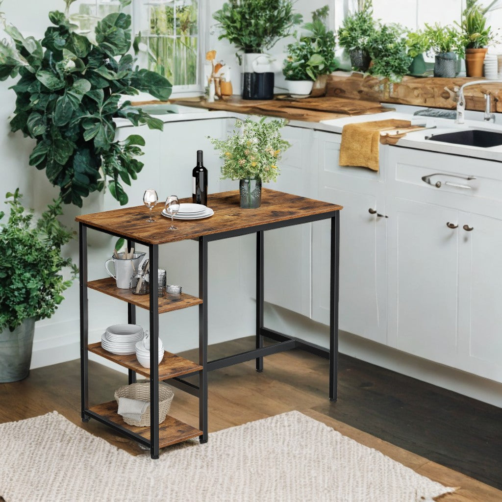 Industrial Bar Table - 42.9" Rustic Wood Top with Metal Frame, Adjustable Feet & Easy Assembly, Kitchen/Dining Use, Rustic Brown