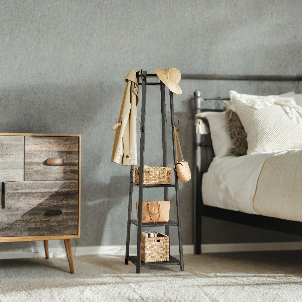 Industrial Coat Rack Stand with 3-Tier Shelves, Hanging Rods & Hooks for Jackets, Bags, Entryway Storage, Free-Standing Steel Frame, Charcoal Gray