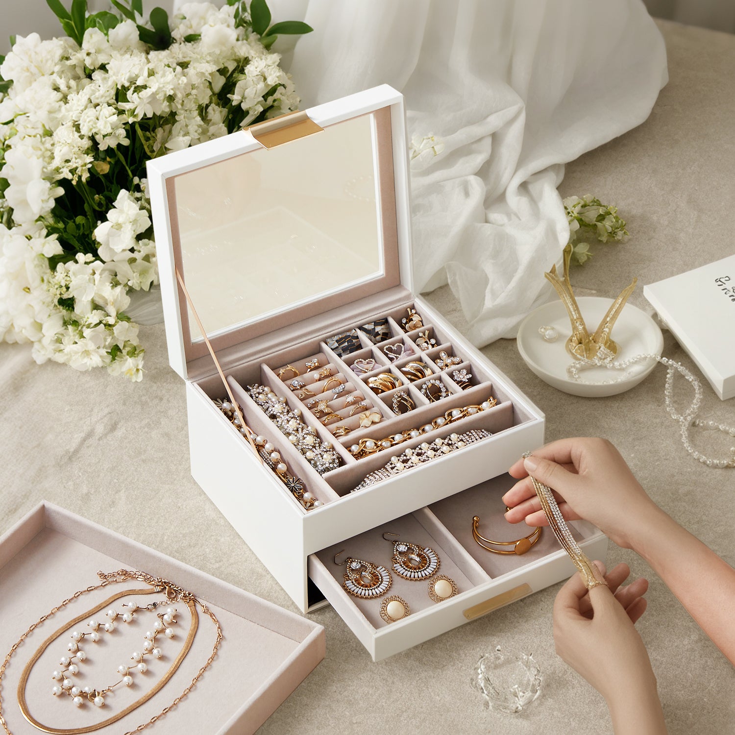 Jewelry Box Organizer with Glass Lid, 3-Layer Jewelry Storage