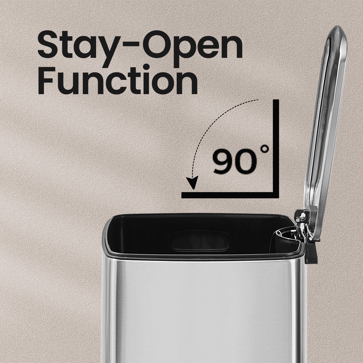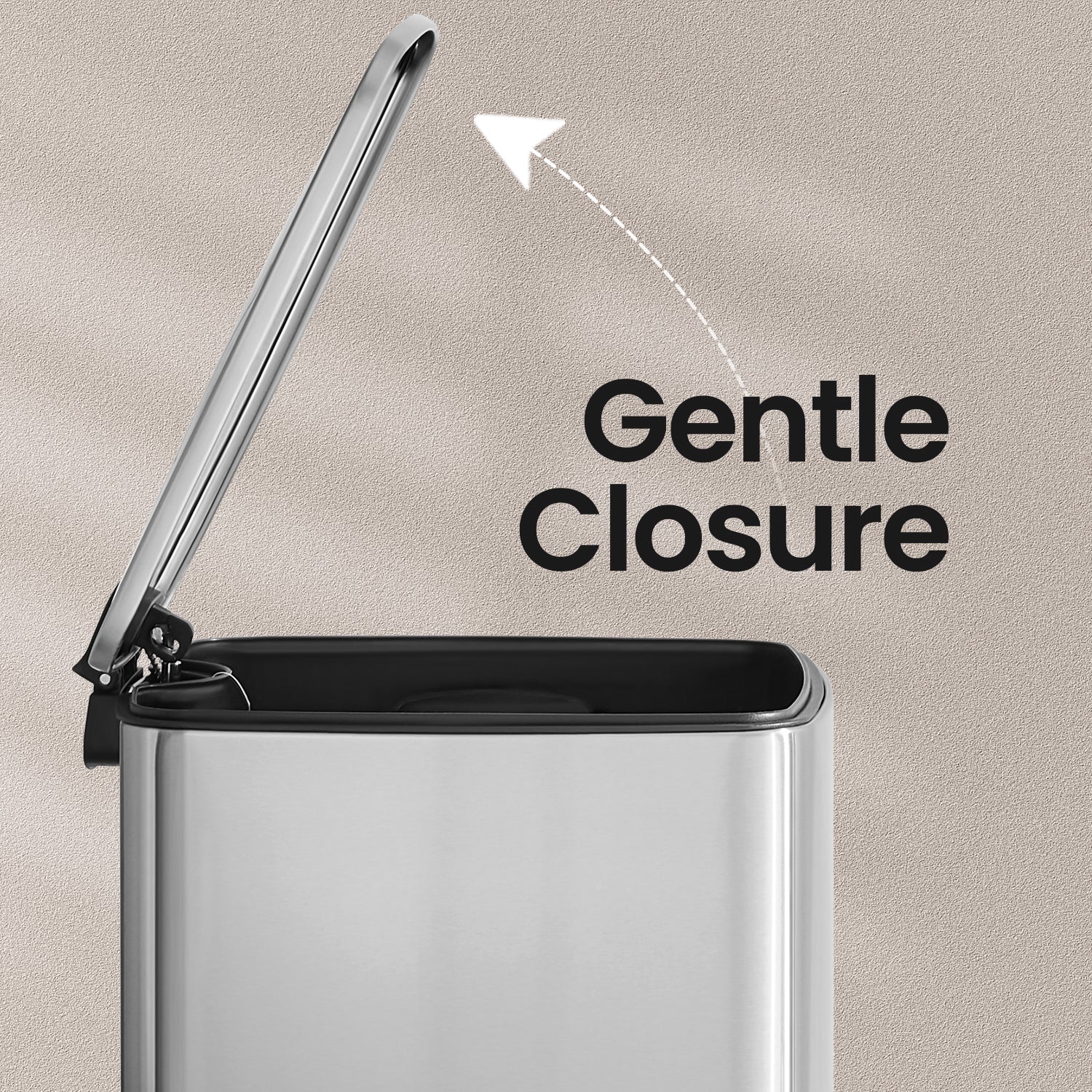 Kitchen Trash Can with Inner Bucket, 5.2-Gallon Soft-Close Lid Bin, Compact & Non-Slip Base, Stainless Steel,Metallic Silver