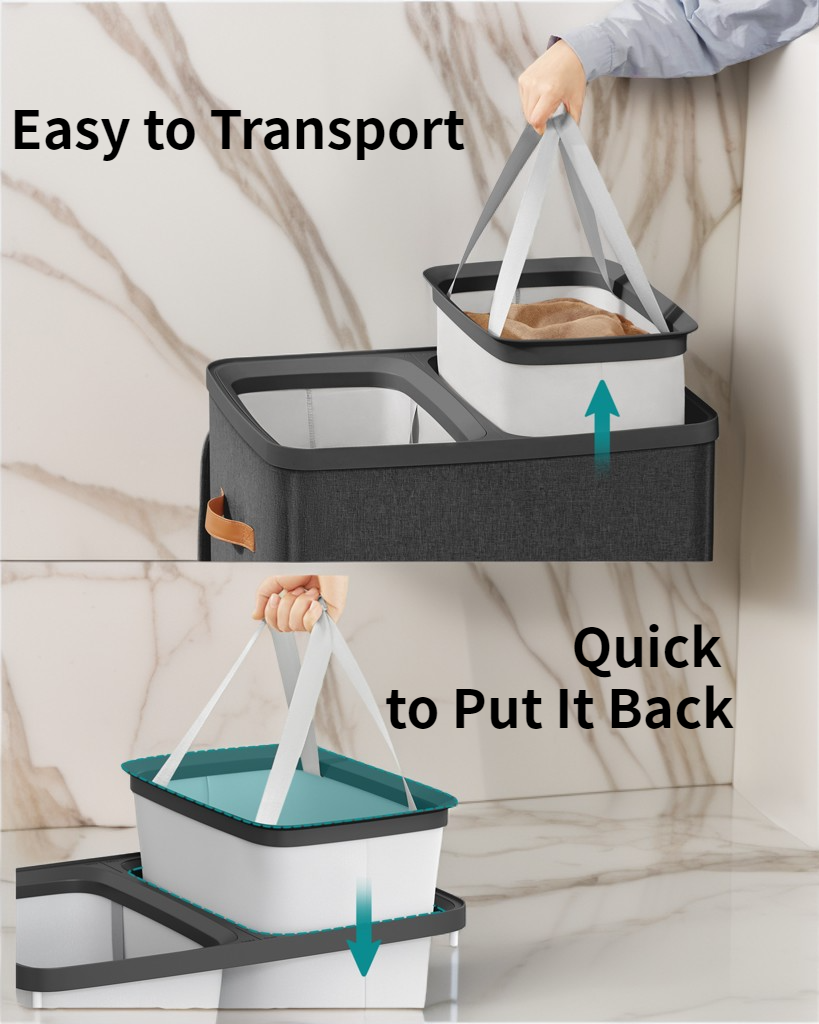 "1. Effortless Laundry Sorting,Pre-sort lights and darks with labeled compartments—making wash day faster and smarter.