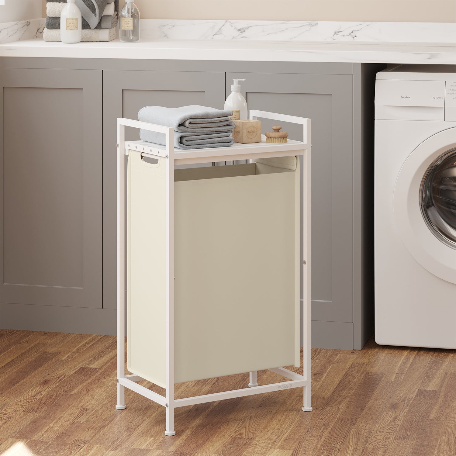 Laundry Hamper with Removable Washable Bags, Pull-Out Shelf, Metal Frame, 12.4 Gallons Capacity, Space-Saving Design for Home, Bedroom, Bathroom, Cream White