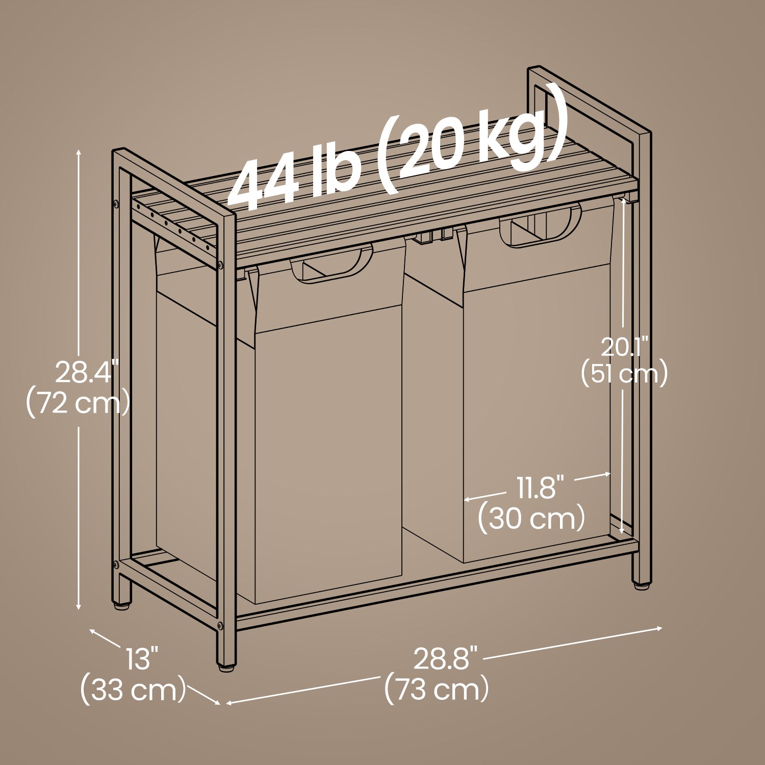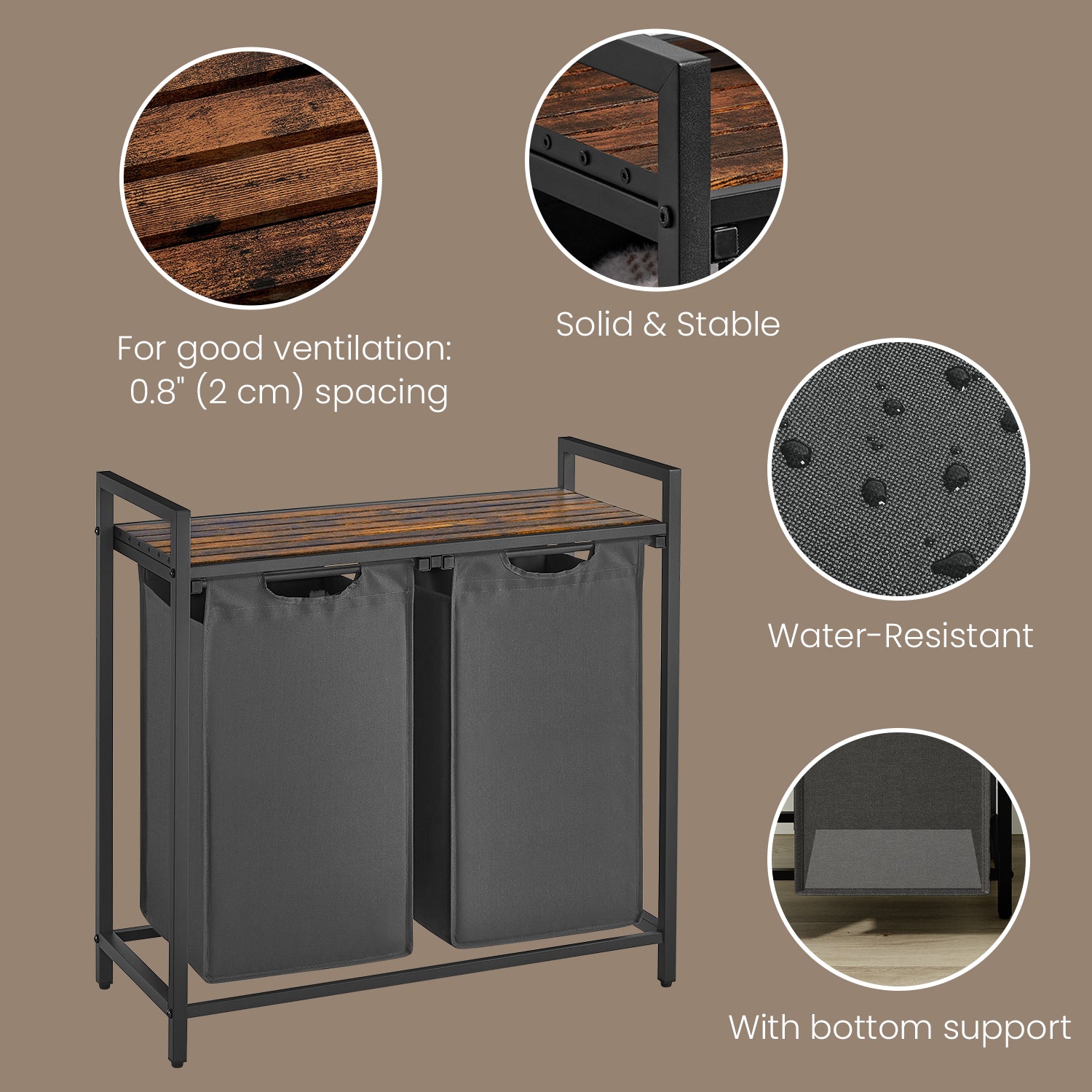Laundry Sorter Hamper with 2 Pull-Out Bags, Detergent Shelf, Sturdy Metal Frame & Adjustable Feet, 24.2 Gallons Capacity, 2-Compartment for Clothes Organization, Rustic Brown,Gray