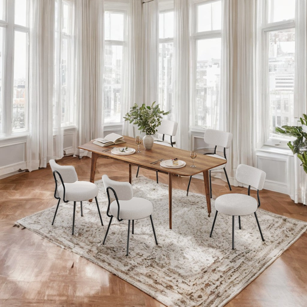 2-Pack Boucle Dining Chairs - Modern Curved Backrest, 265lb Capacity, Adjustable Feet, Quick Assembly, Cream White
