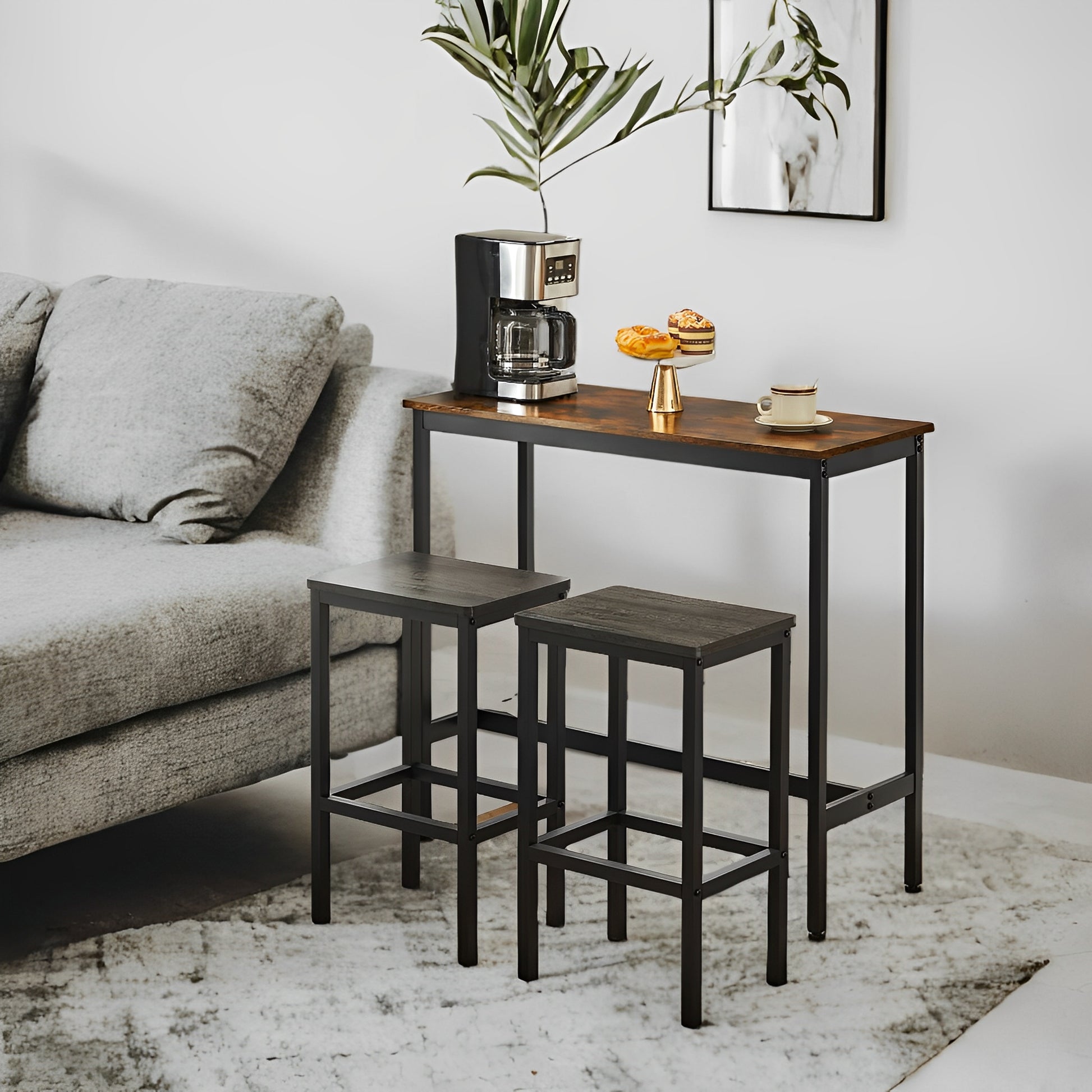 2-Pack Industrial Bar Stools - 264lb Capacity, Space-Saving Design, Footrest, Easy Assembly, Charcoal Gray and Black