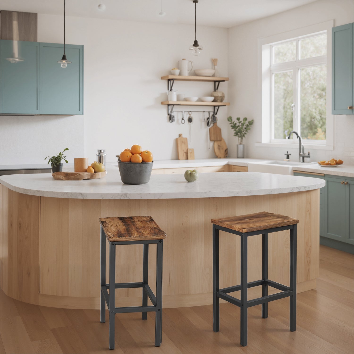 2-Pack Industrial Bar Stools - 264lb Capacity, Space-Saving Design, Footrest, Quick Assembly, Rustic Brown and Black