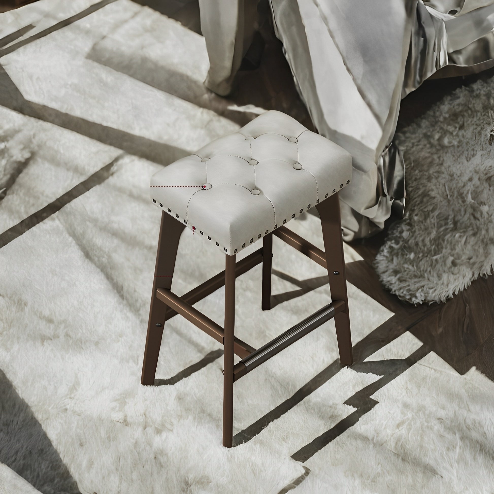 Counter Height Bar Stools Set of 2 - 26" Backless PU Leather Stools with Wood Legs & Footrest, for Kitchen Island & Dining, Taupe