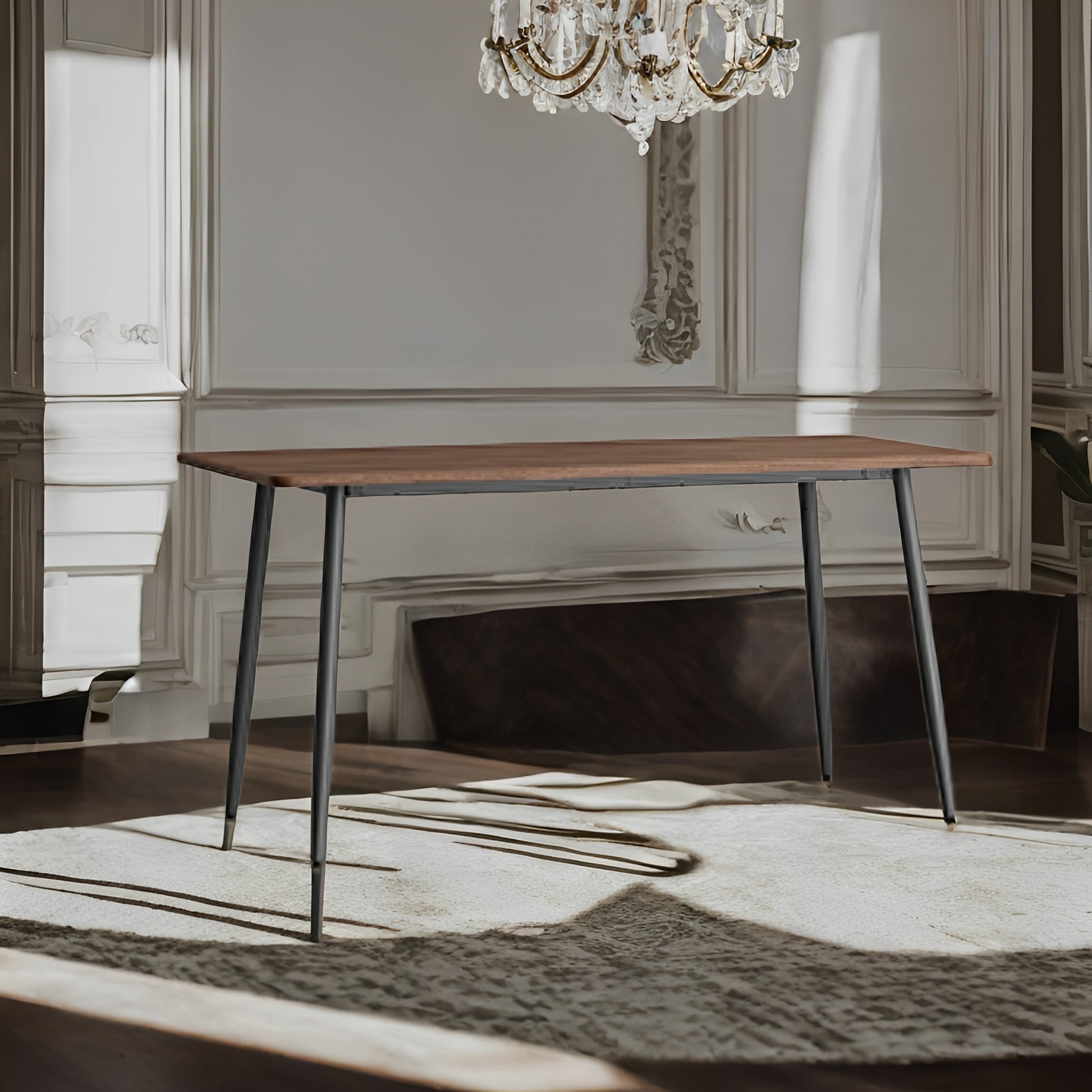Farmhouse Dining Table for 6 - Heat/Scratch Resistant, Quick 15-Min Assembly, Steel Legs, 55"L, Walnut and Black