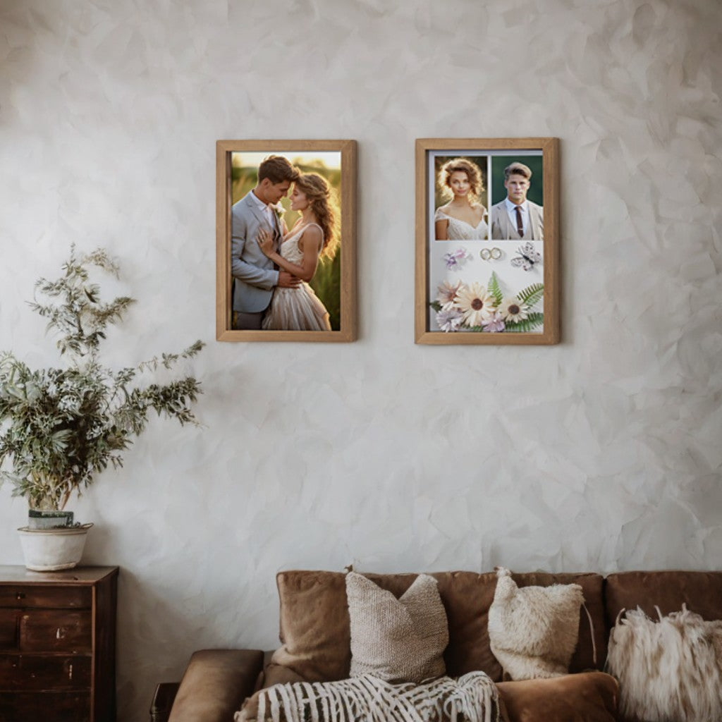 LEDREM Set of 2 Collage Picture Frames - 6 Mats Included, Shadow Box Display, Multi-Photo Layouts, Wall or Tabletop, Teak Brown