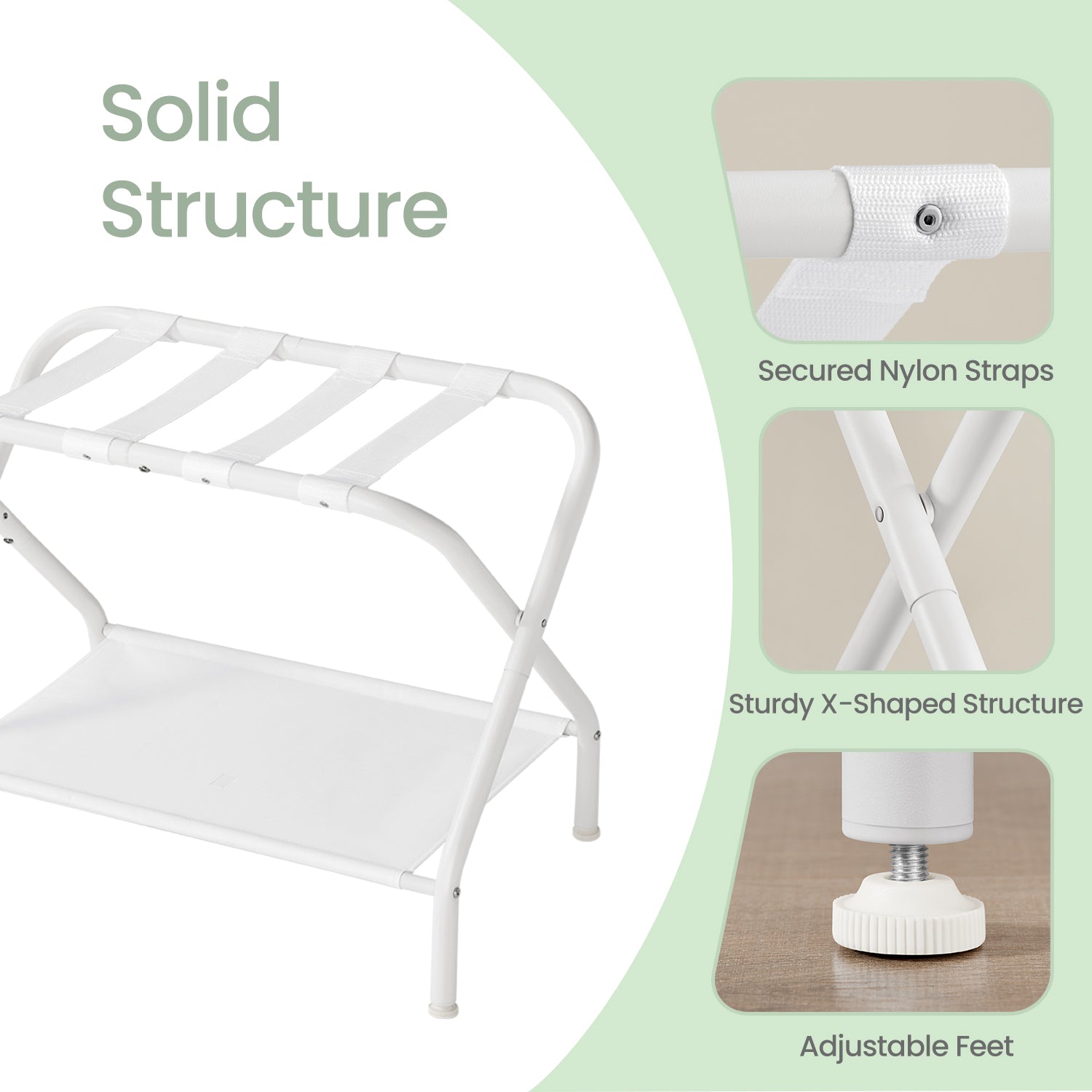 Luggage Racks, Set of 2 – Heavy-Duty Foldable Suitcase Stand with Storage Shelf & Non-Scratch Feet, for Bedroom,Guest Room,Hotel, Holds 110 lb, Cloud White