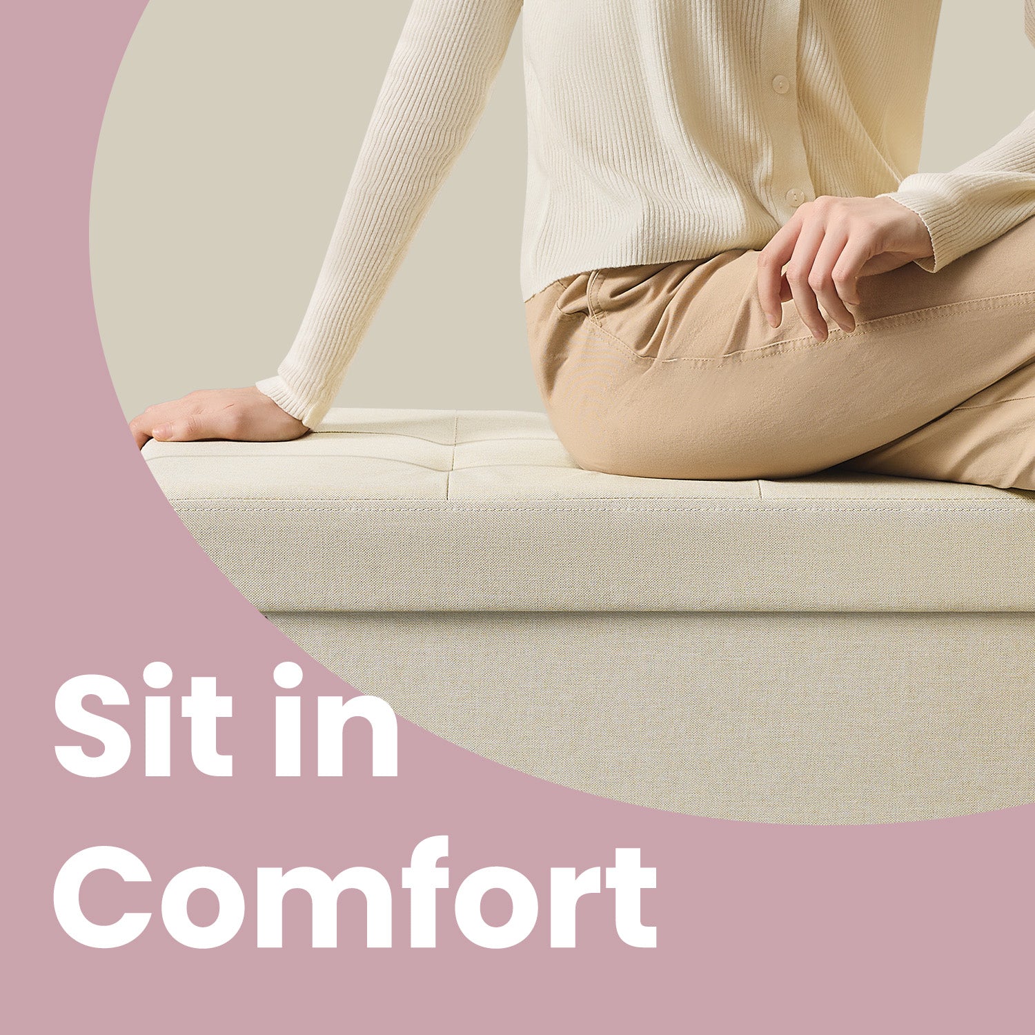 Luxury Foldable Storage Ottoman - 43" Multi-Functional Bench, 660lb Capacity, 30-Gallon Organizer, Cream White