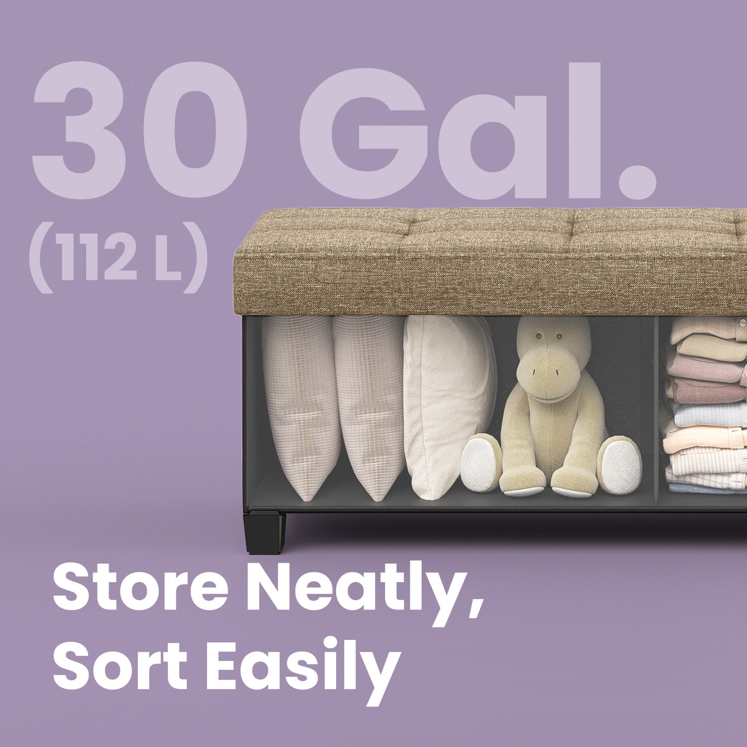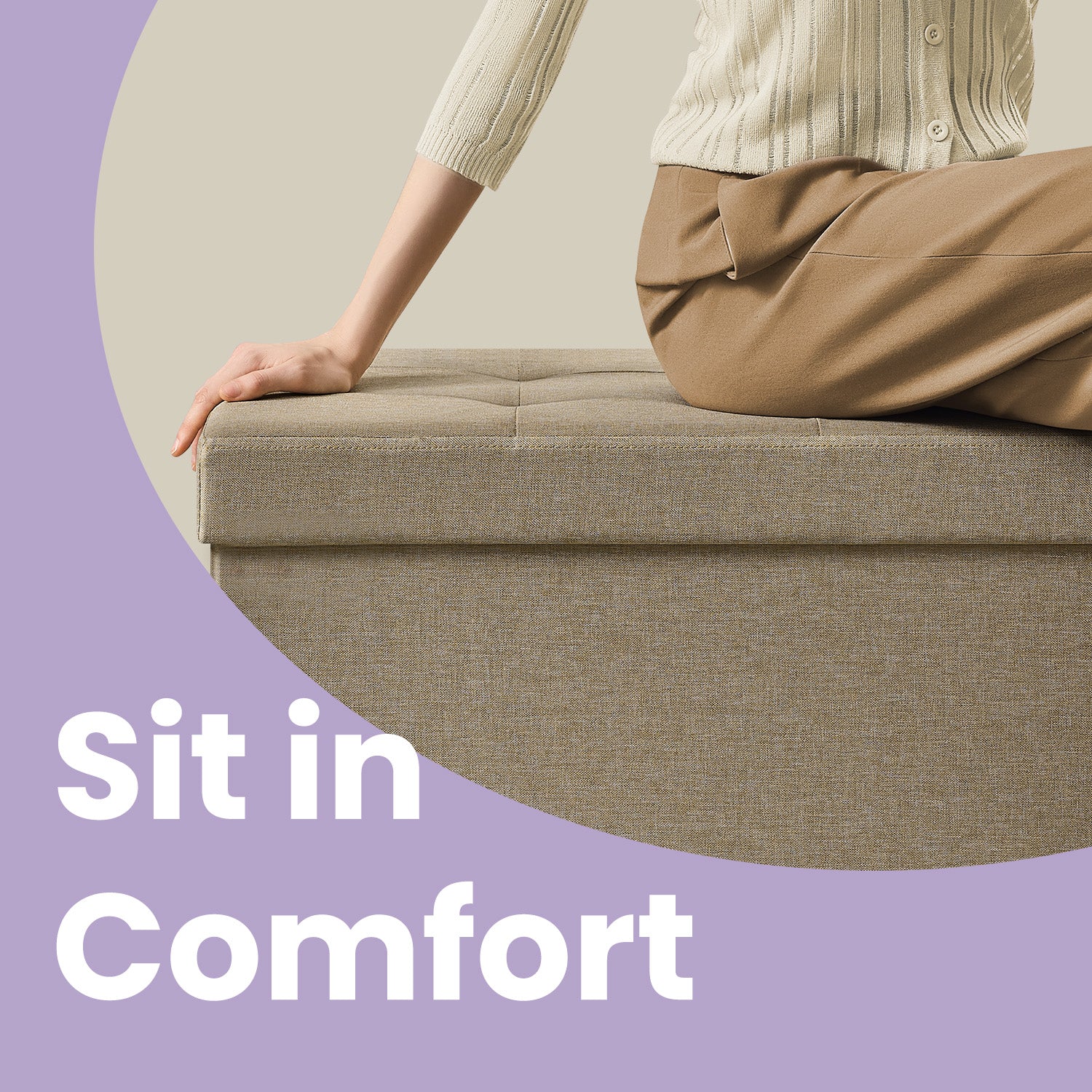 Luxury Storage Ottoman Bench - 43" Foldable, 660lb Capacity, 30-Gallon Organizer, Tufted Linen Fabric, Multi-Functional, Camel Brown