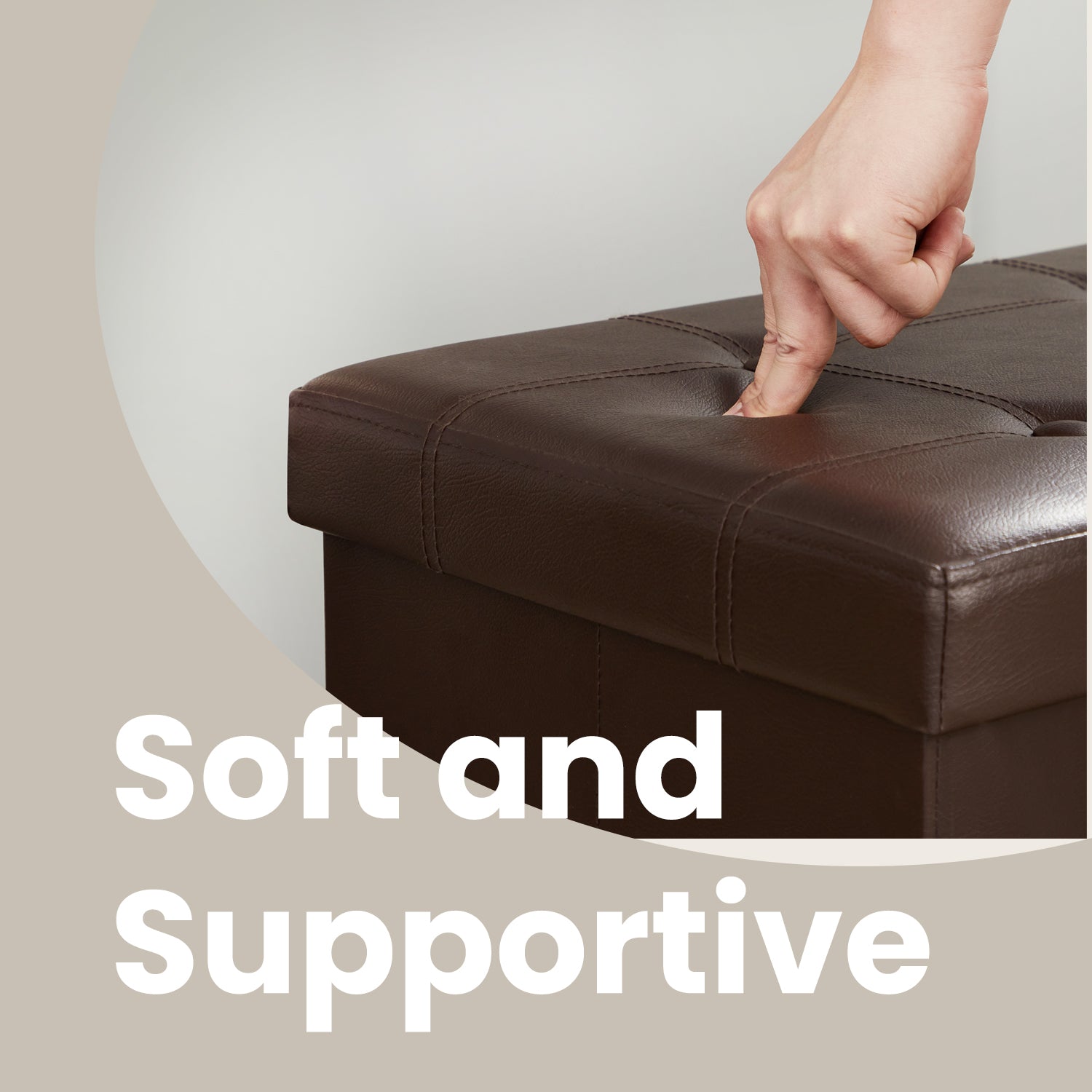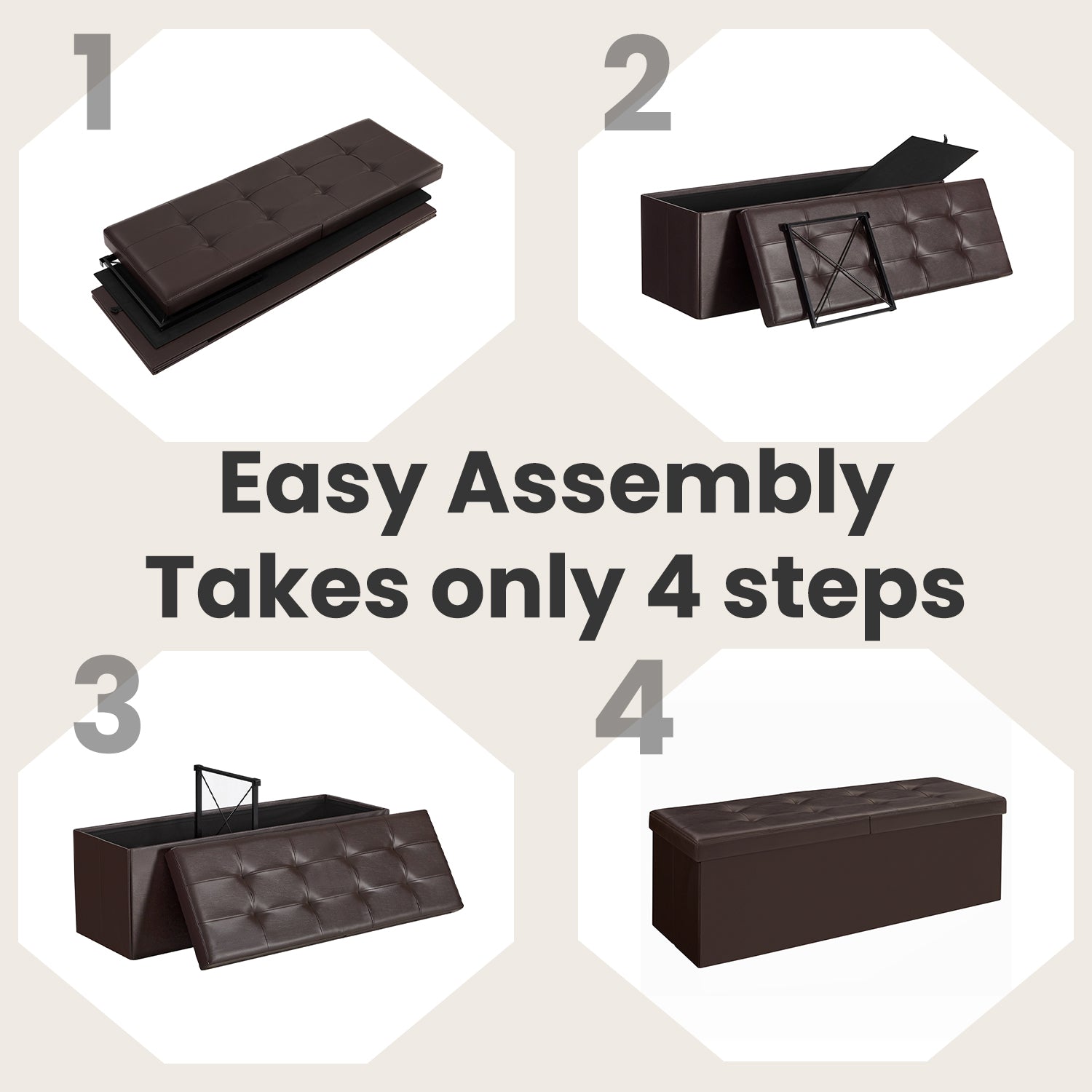 MAZIE Collection - 43" Foldable Storage Ottoman Bench, 660lb Capacity, Multi-Functional Footrest & Organizer, Removable Divider, Brown