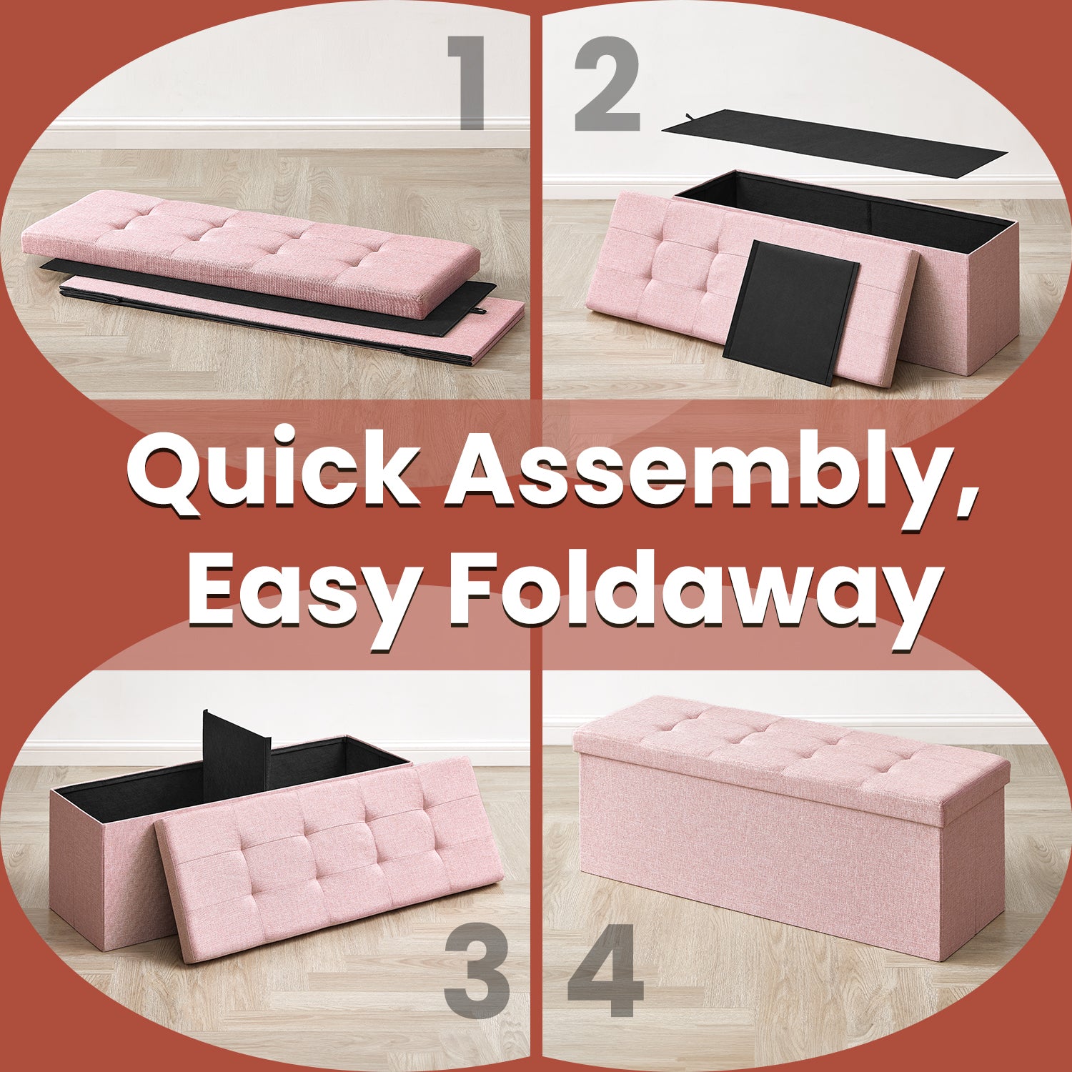 MAZIE Collection Storage Ottoman Bench, 43" Extra Wide, 660lb Capacity, Multi-Functional Footrest, Seat, Storage, Removable Divider, Jelly Pink