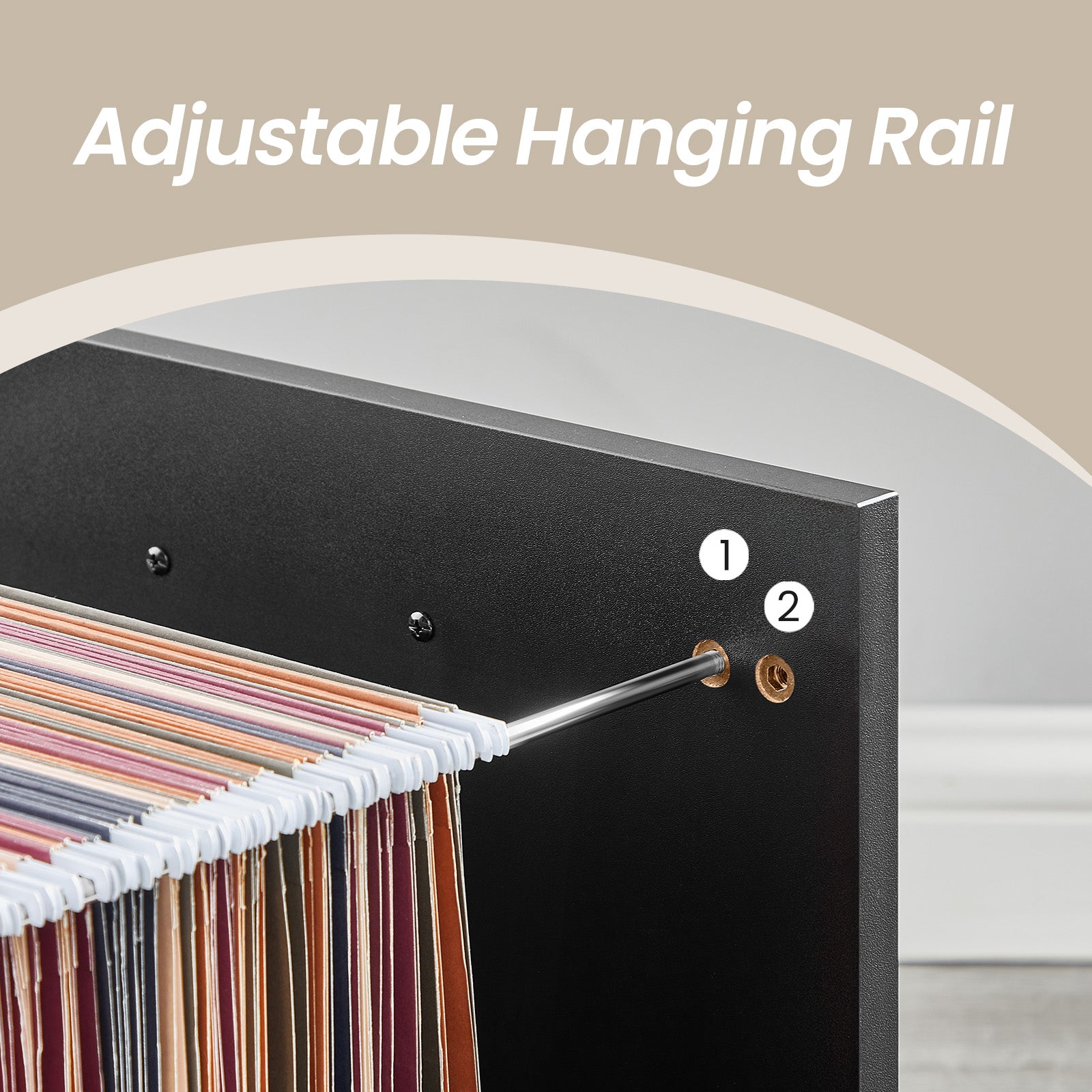 Mobile Office File Cabinet with Wheels, 2-Tier Lockable Drawers & Open Shelf, Steel Frame Storage for A4/Letter Files, Easy Roll & Lock Design, Ink Black