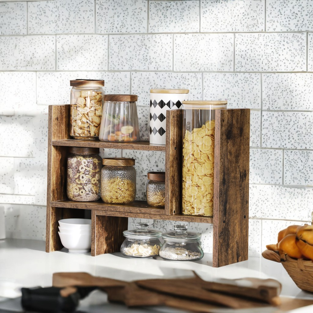 Modular Desktop Organizer Set, 3-Piece Wooden Shelf System for Office/Kitchen, Adjustable Storage for Books, Supplies & Decor , Easy Assembly, Rustic Brown