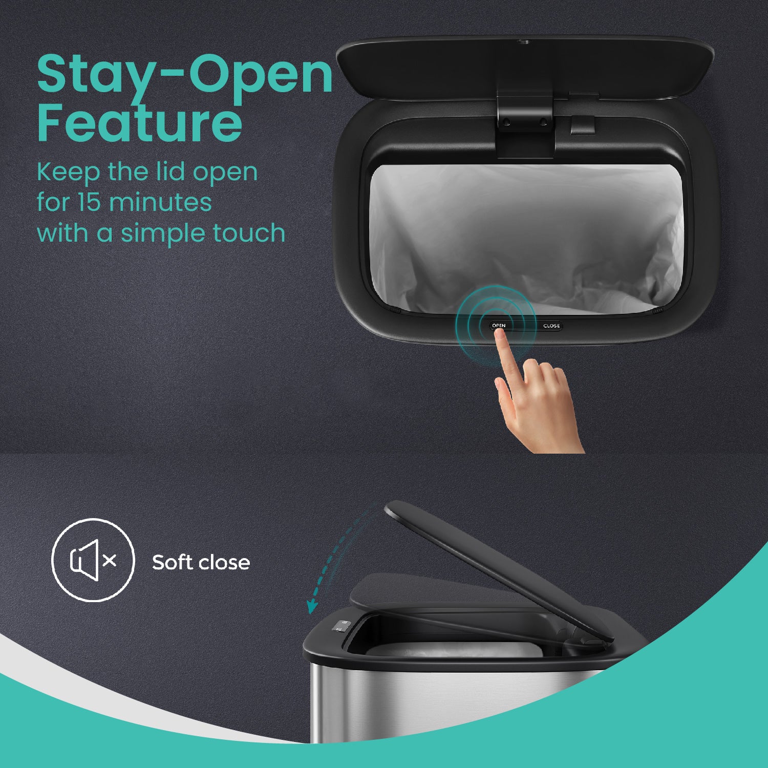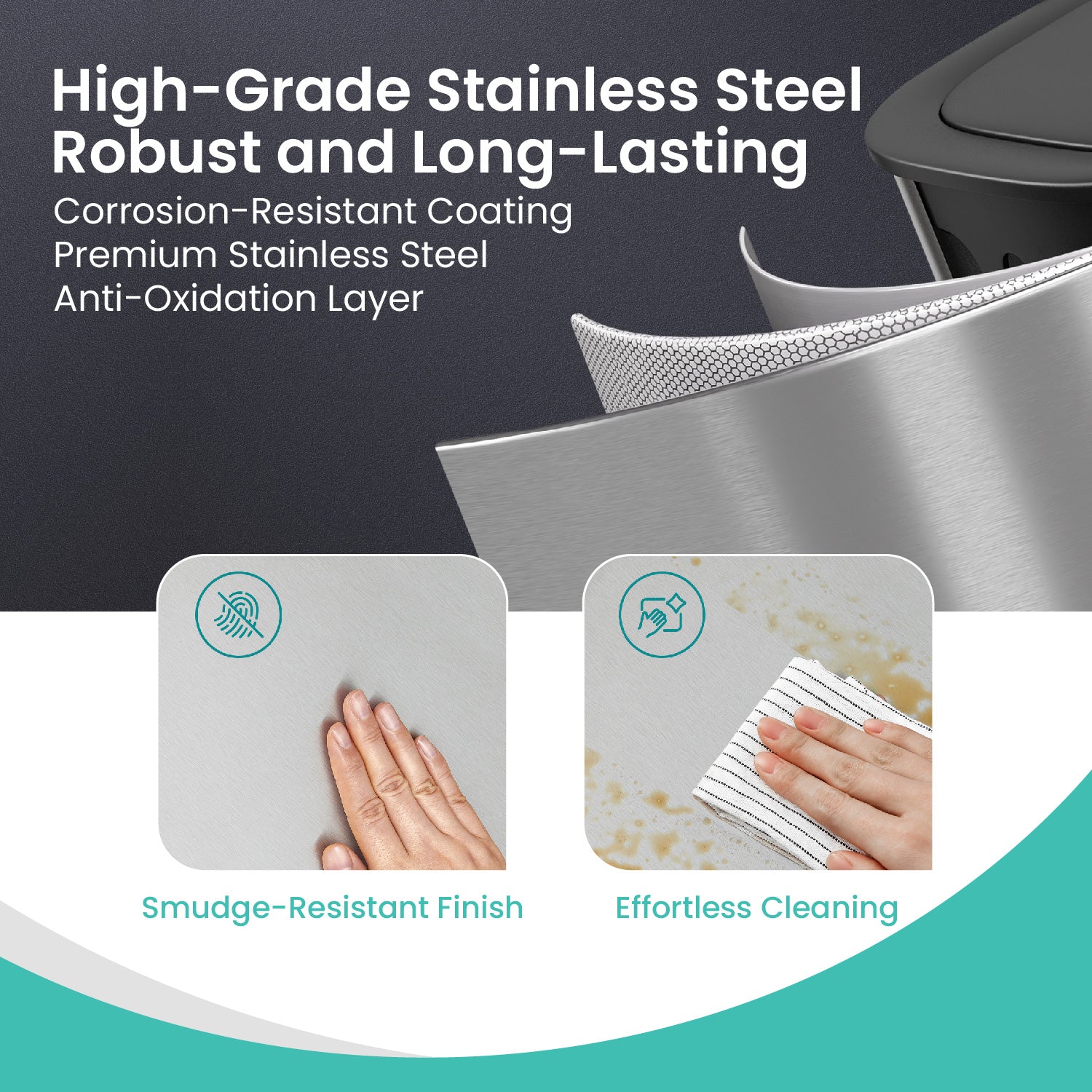Motion Sensor Trash Can, 13 Gallon Automatic Kitchen Bin with Soft-Close Lid & Bag Retainer, Includes 15 Liners – Stainless Steel,Silver