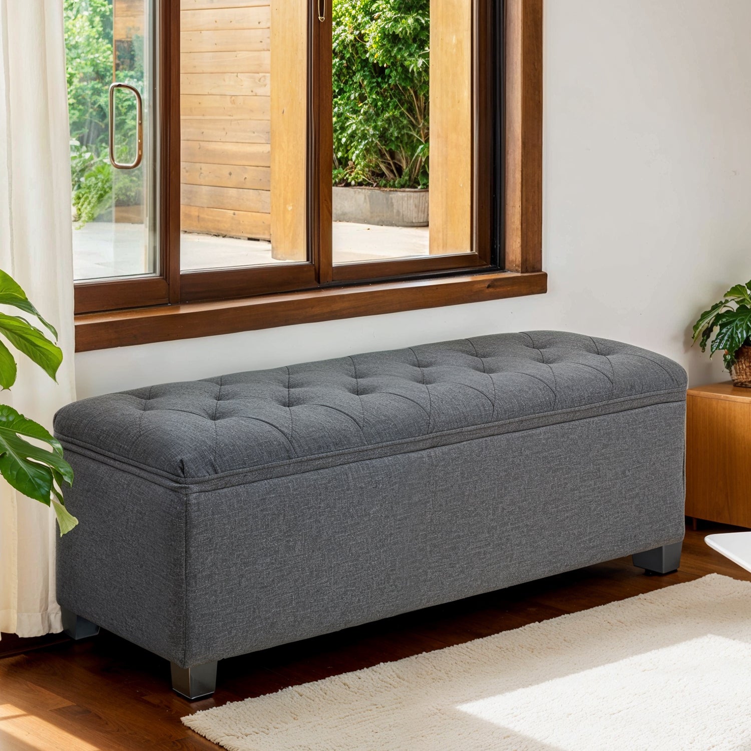Multi-Functional Storage Ottoman Bench with Removable Cover, 43" Extra Wide, 660lb Capacity, for Living Room, Bedroom, Entryway, Dark Gray