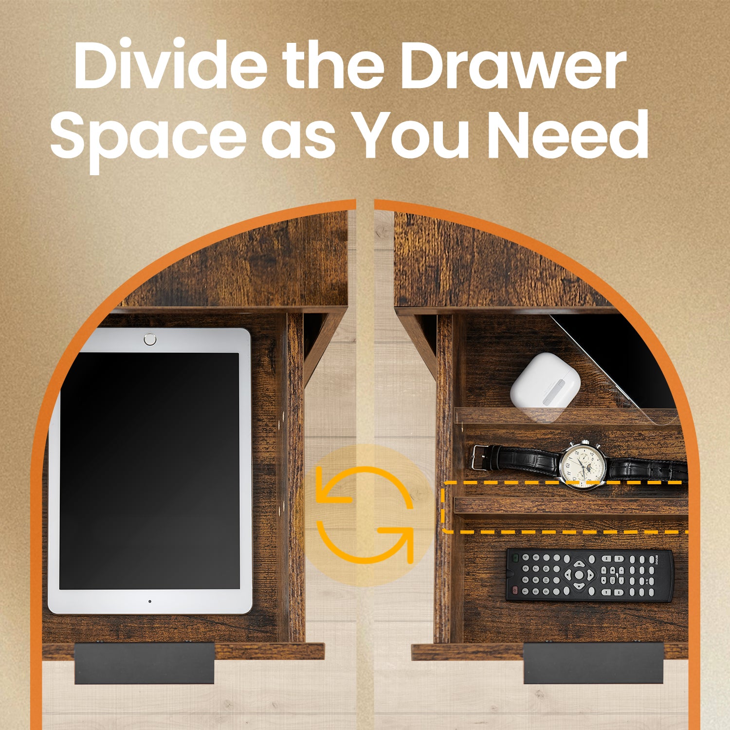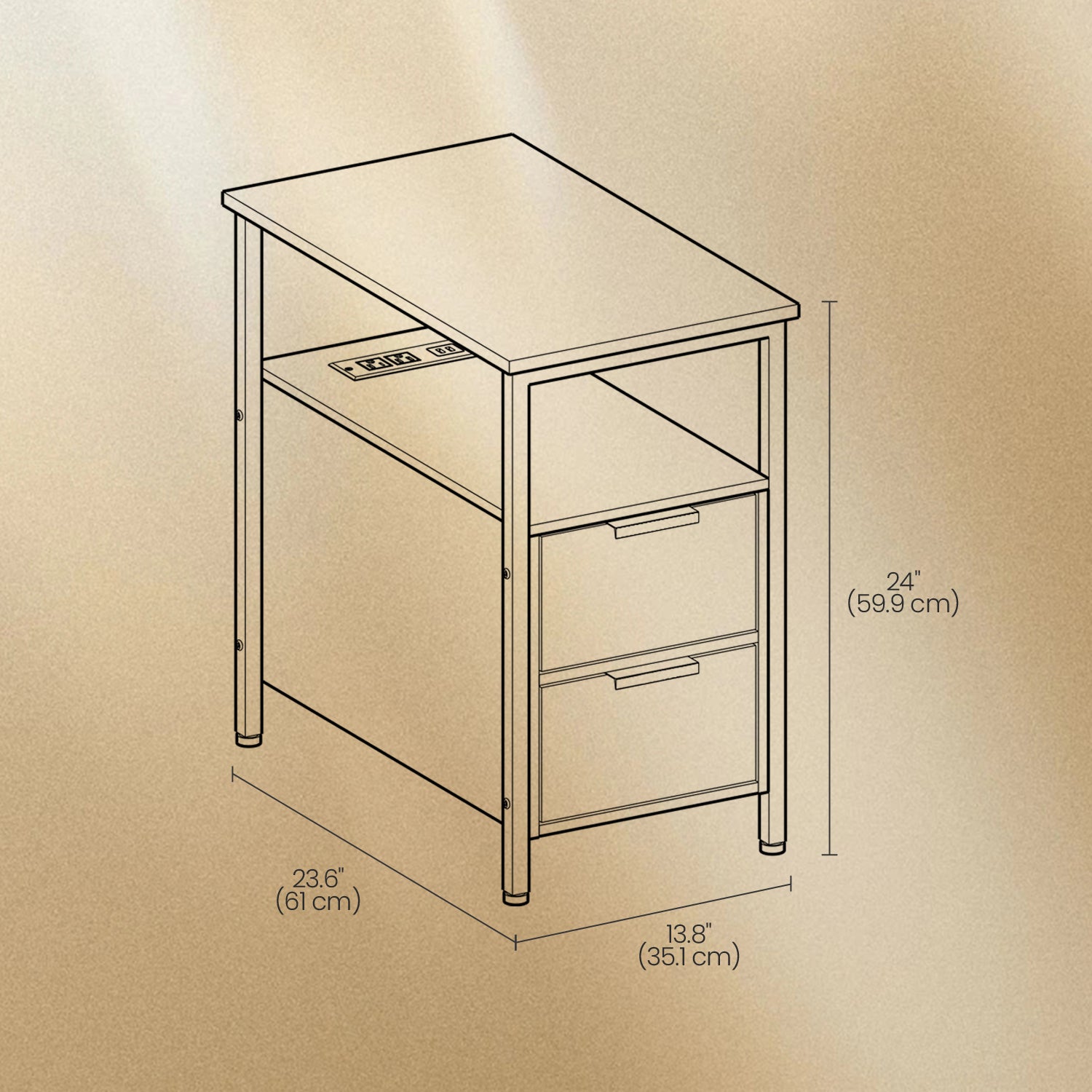 Narrow Charging Side Table - Rustic End Table with 2 Drawers & Power Strip, Space-Saving Nightstand, Brown and Black
