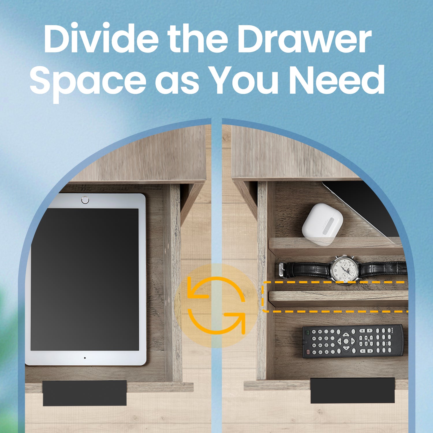 Narrow Charging Side Table - Slim End Table with 2 Drawers & Power Strip, Space-Saving Nightstand, Greige and Black