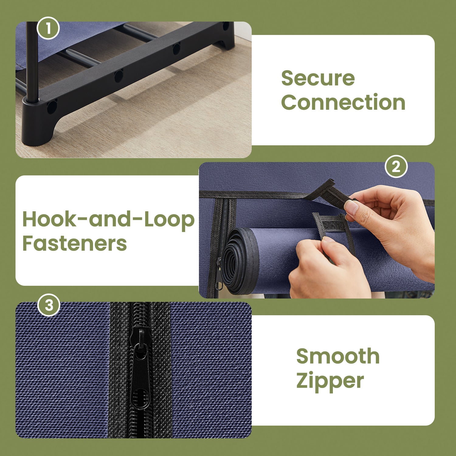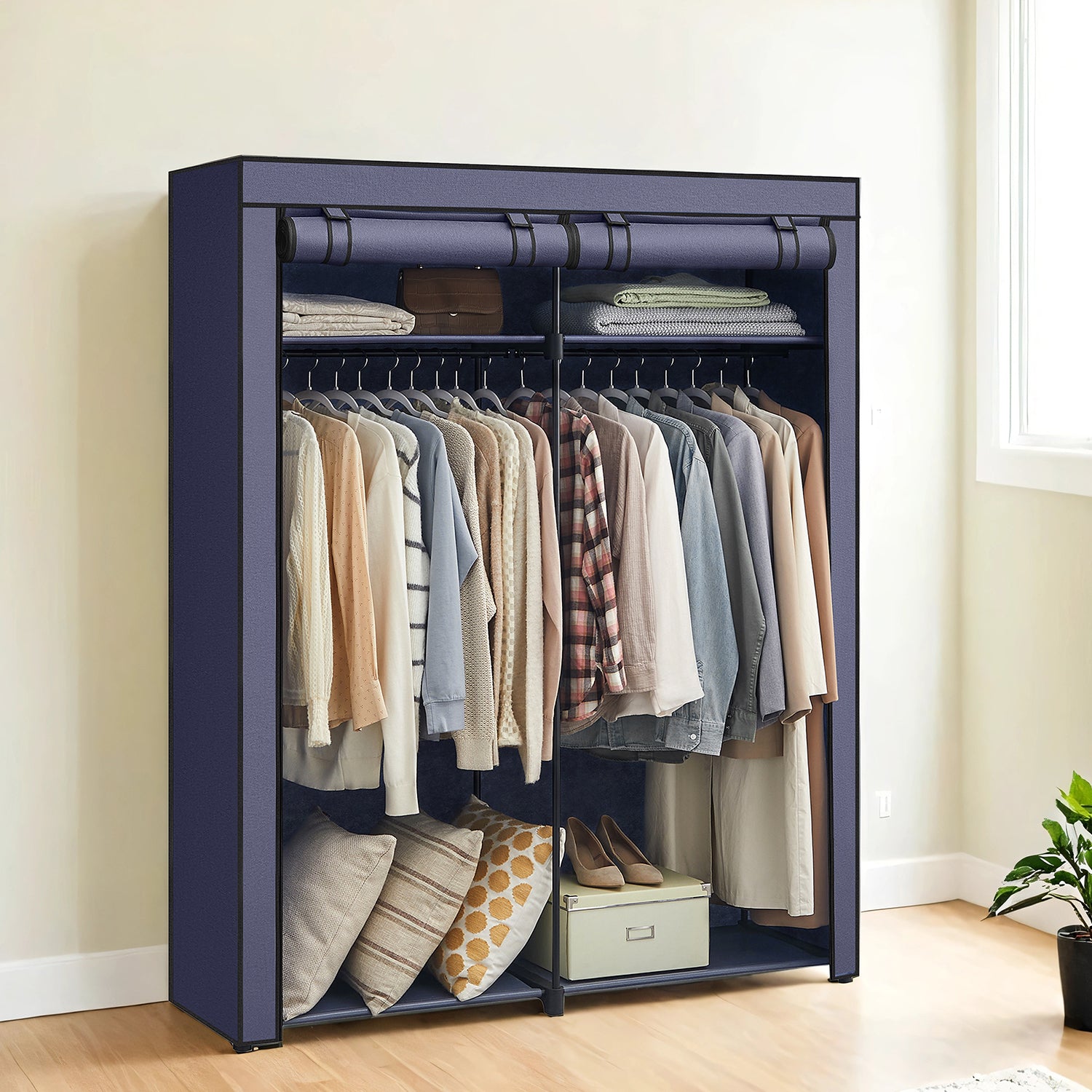 Portable Closet Wardrobe with Cover, 2 Rods & 2 Shelves Freestanding Fabric Clothing Organizer for Bedroom, No-Tool Assembly, Black,Dark Blue