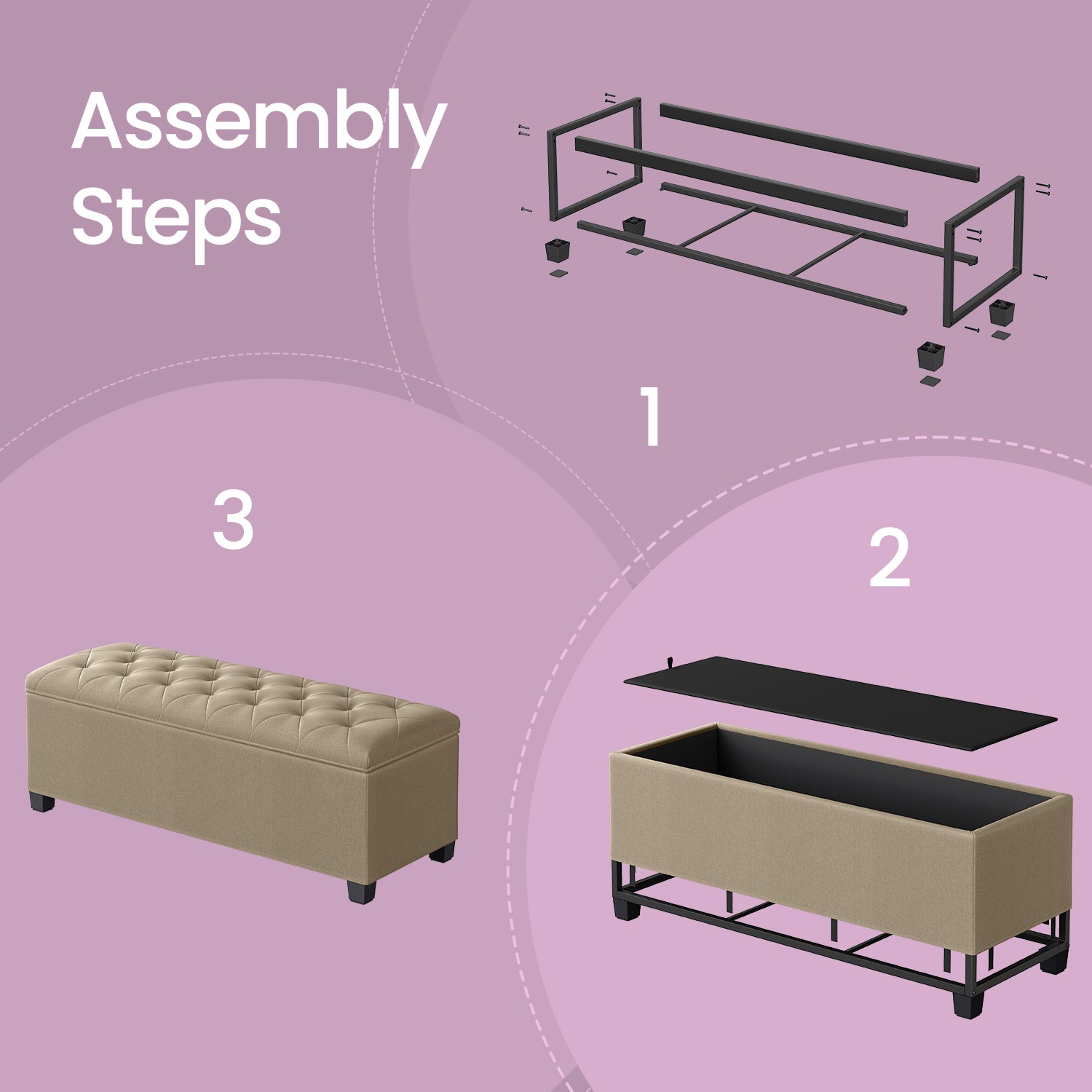 Premium Storage Ottoman Bench with Removable Cover, 43" Extra Wide, 660lb Capacity, 5-in-1 Multi-Functional, Camel Brown