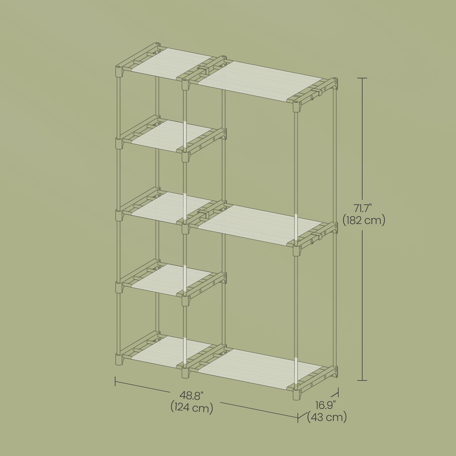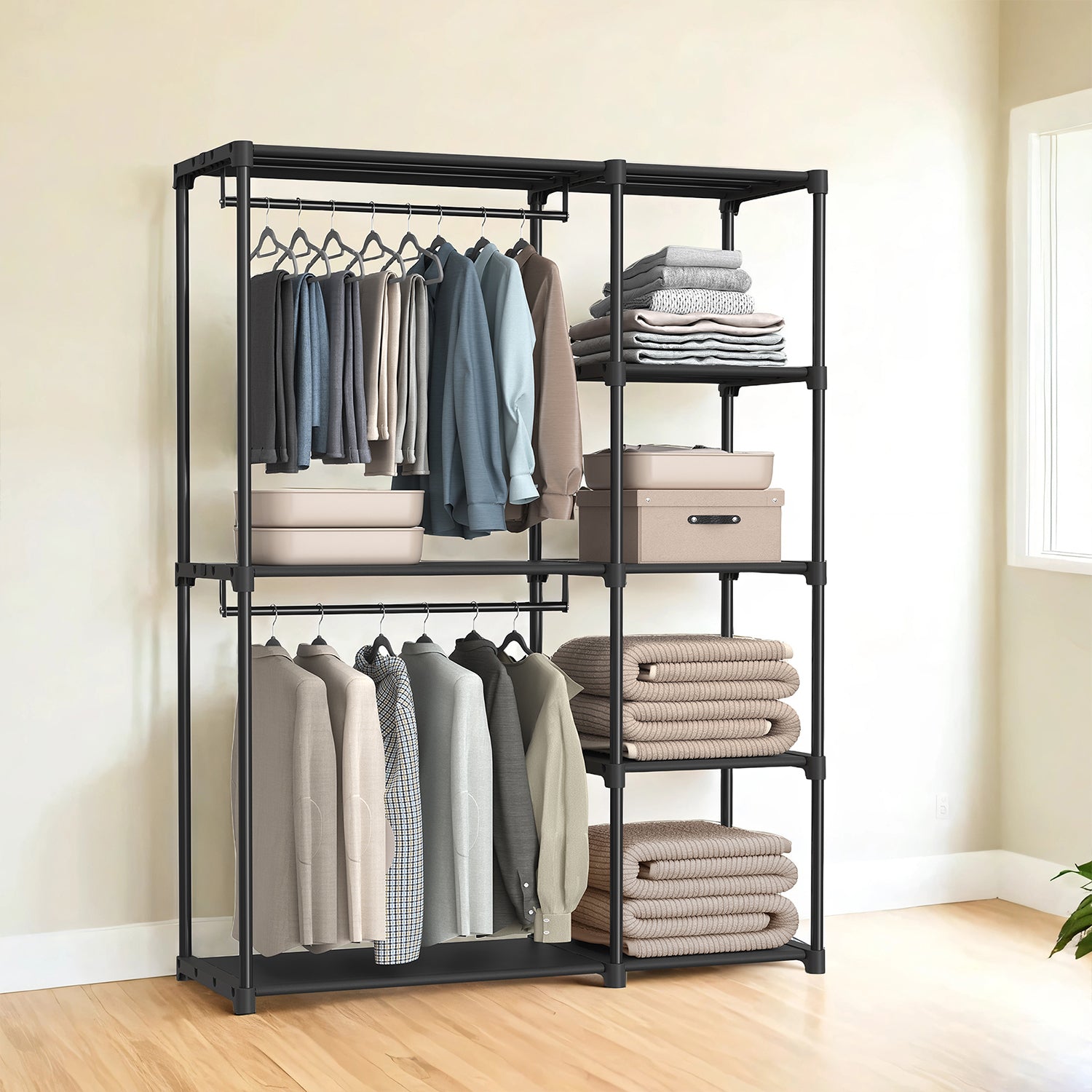 reestanding Closet Organizer with 2 Hanging Rods & Shelves, Portable Wardrobe Rack for Bedroom Cloakroom Entryway, Tool-Free Assembly, Black